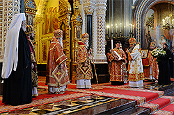 His Holiness was joined in the service by His Eminence Metropolitan Hilarion of Eastern America and New York, First Hierarch of the Russian Orthodox Church Outside of Russia, who was among a host of archpastors and clergymen of the Russian Orthodox Church and other Local Orthodox Churches.