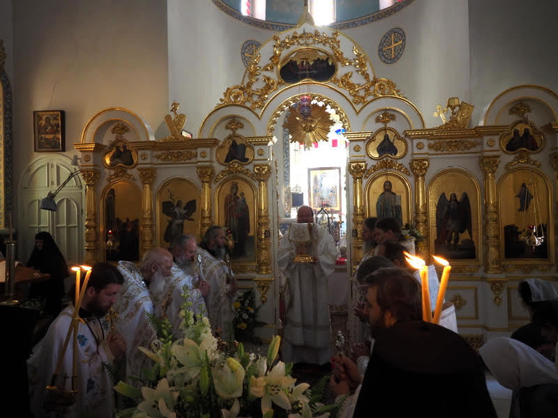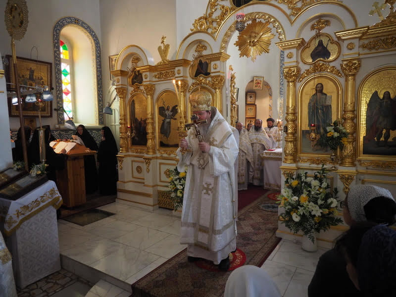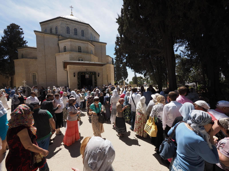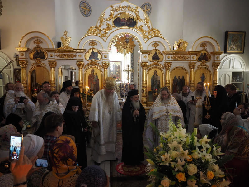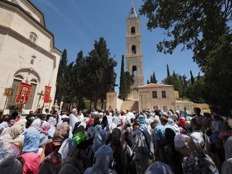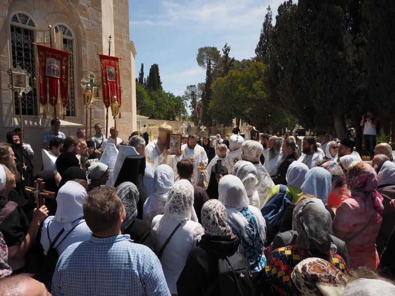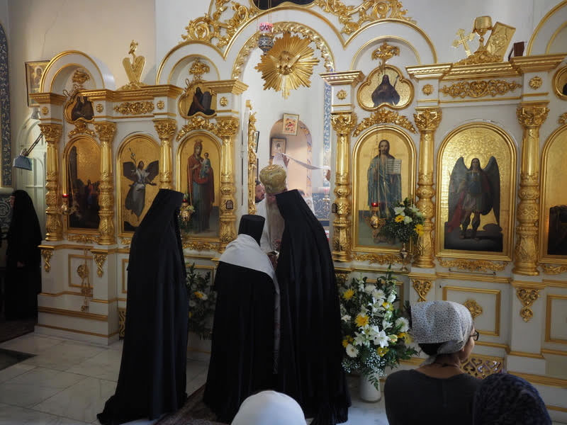 On Thursday, May 25, 2017, the day of the Ascension of the Lord, His Grace Bishop Agapit of Stuttgart, Vicar of the German Diocese of the Russian Orthodox Church Outside of Russia, led divine services at Ascension of the Lord Convent on the Mount of Olives in Jerusalem. He was joined by Archimandrite Roman (Krassovsky), Chief of the Russian Ecclesiastical Mission in Jerusalem, and his clergymen, with a large gathering of monastics and pilgrims from throughout the Russian diaspora.