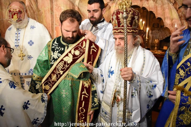 With the blessing of His Beatitude Patriarch Theophilos III of Jerusalem and All Palestine, Liturgy was headed by His Eminence Archbishop Aristarchos of Constantinos, General Secretary of the Holy Synod of the Jerusalem Patriarchate, and at the customary moment, Subdeacon George (Khadarya) Baramki was ordained to the diaconate.