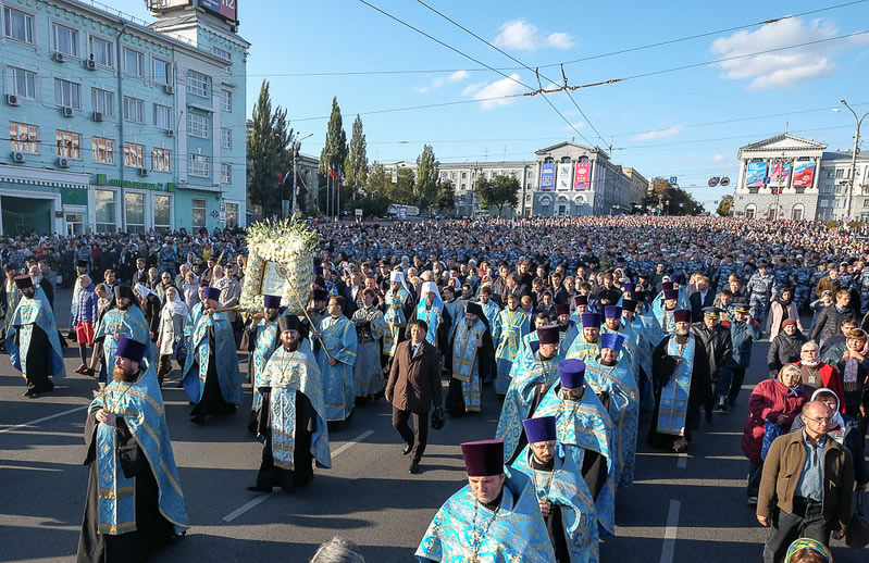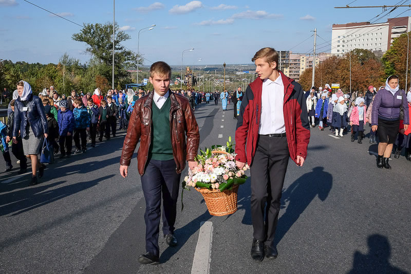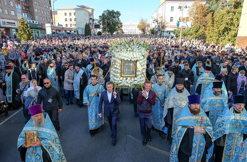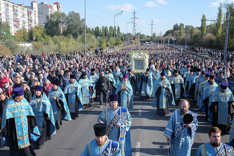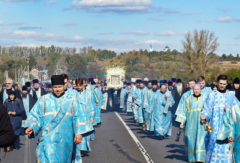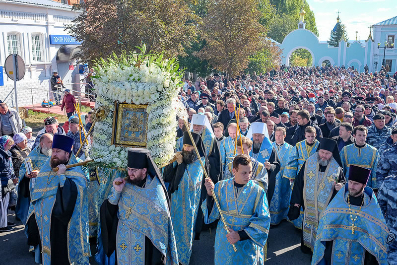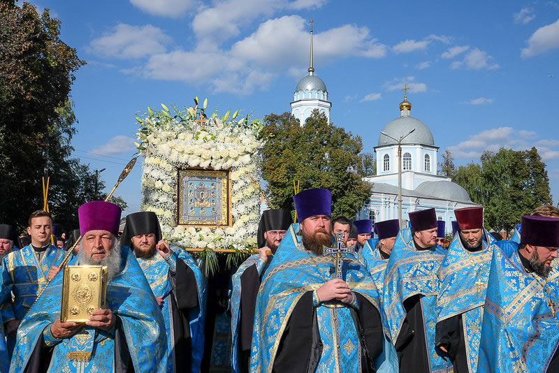 On the Apodosis of the Nativity of the Most-Holy Mother of God, September 25, 2019, the traditional procession of the cross was held with the Kursk-Root Icon of the Mother of God "of the Sign,” starting at Kursk-Root Hermitage and ending at Znamensky Monastery in Kursk, Russia.