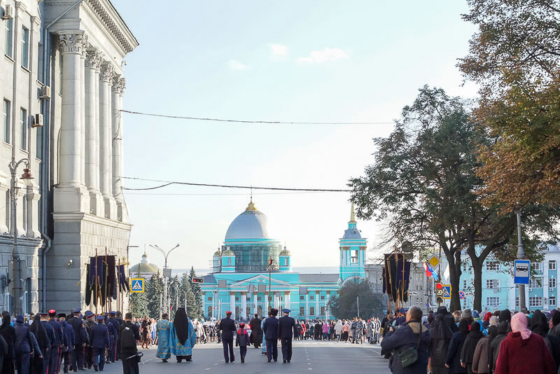 A procession of the cross with the Kursk-Root Icon of the Mother of God "of the Sign" takes place from Kursk-Root Hermitage to Znamensky Cathedral in Kursk