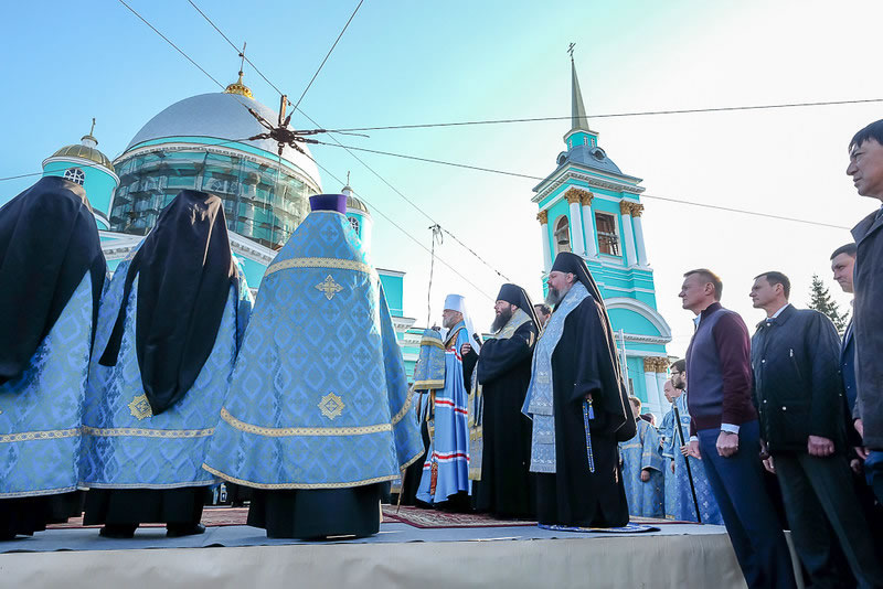 The Kursk-Root Icon arrived in Kursk three hours later. At Vvedensky Church, the miraculous image was greeted by the people of Kursk and guests. Metropolitan German blessed the city and the procession with the icon, after which it continued through the streets of the city. On Perekalsky Square, the icon was greeted by the Governor of the Kursk Region, Roman Starovoit and Kursk Mayor Viktor Karamyshev, who joined the procession.