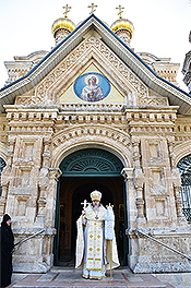 On this day, Archimandrite Roman (Krassovsky), Chief of the Russian Ecclesiastical Mission in Jerusalem of the Russian Orthodox Church Outside of Russia, celebrated Divine Liturgy at the Convent of St Mary Magdalene, Equal-to-the-Apostle, in Gethsemane, Jerusalem. The minor blessing of the waters was then performed in the courtyard. Fr Roman was joined by Hieromonk Feodor (Kiritze) and Hierodeacon Gerasim (Kotovsky). Praying at the service was Abbess Elizabeth (Smelic) and her nuns.