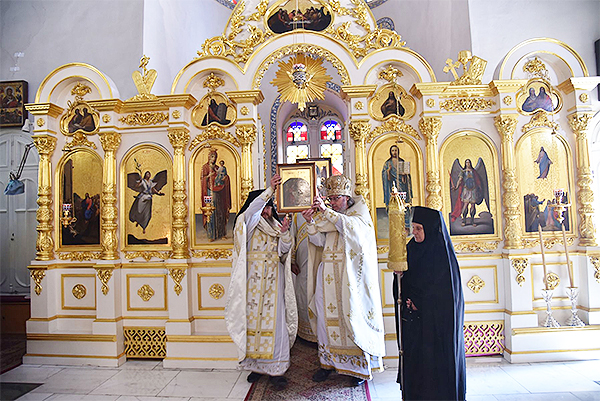 At the end of Matins, immediately after the singing of the Great Doxology and the troparion of the feast, the Divine Liturgy began. Abbess Elisabeth (Smelic) and her sisters prayed at the service.