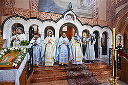 The service was led by the Chief of the Russian Ecclesiastical Mission, Archimandrite Roman (Krassovsky), accompanied by the clergy of the monastery: Hieromonk Misail (Minin), Hieromonk Theodore (Kirike) and Hierodeacon Gerasim (Kotovsky). Abbess Elisabeth (Smelic) and the sisters of the convent prayed at the services.