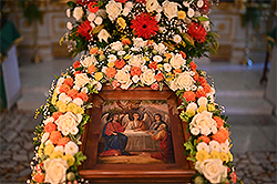 In advance, the sisters of the monastery cleaned the temple and decorated it with flowers.