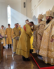 Concelebrating with the hierarchs at Divine Liturgy were: Archpriest George Zelenin (parish rector), Protodeacon Serge Arlievsky (cleric of Holy Dormition Convent "Novo-Diveevo" in Nanuet, NY), Hierodeacon Panteleimon (Jigalin; diocesan cleric), and parish Deacon Andrei Logvinenko.
