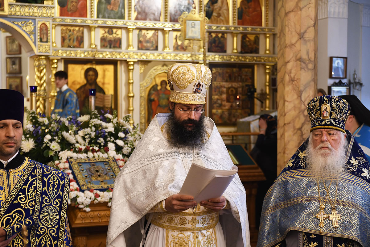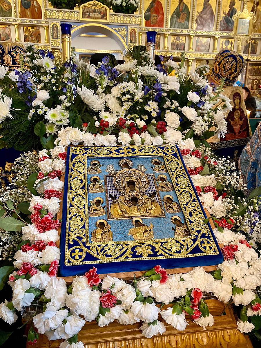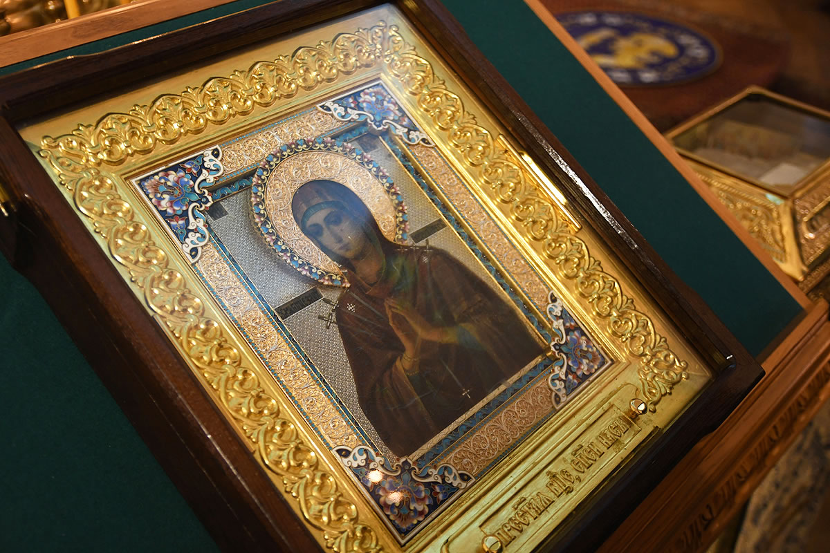 The festal Liturgy was simultaneously held under the aegis of two sacred icons: the Protectress of the Russian Diaspora – the Kursk Root Icon of the other of God – and the myrrh-streaming icon "Softener of Evil Hearts" from Moscow.