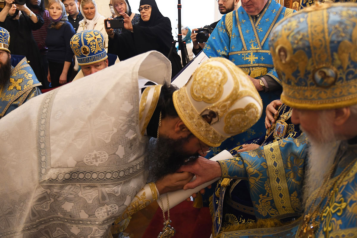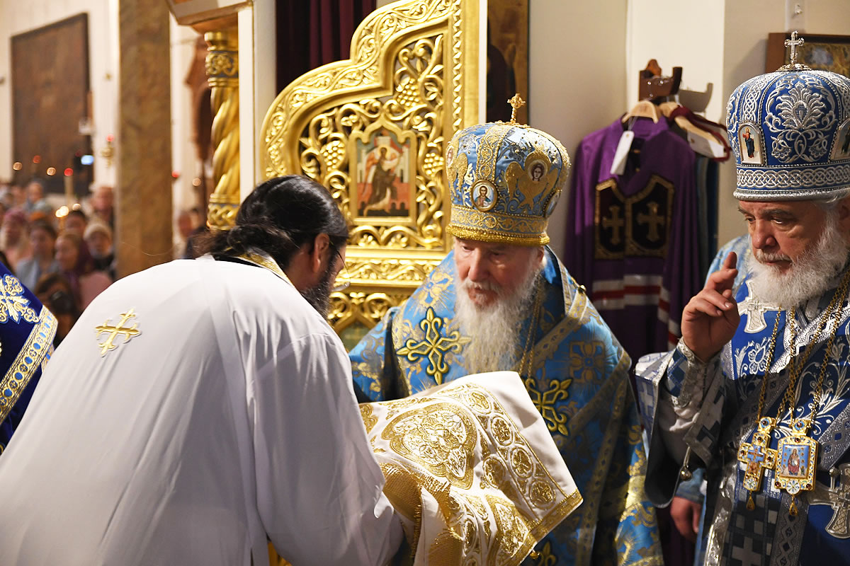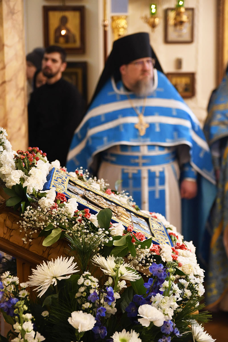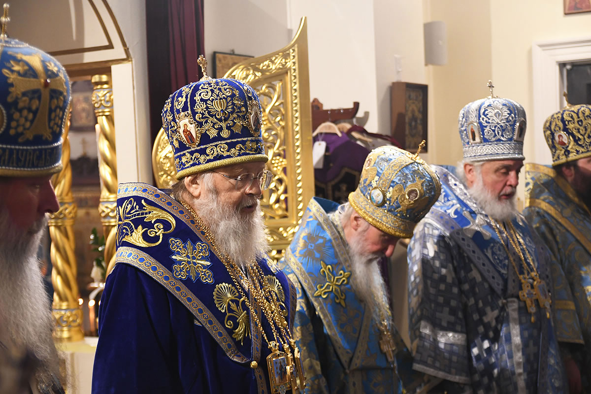 The festal Liturgy was simultaneously held under the aegis of two sacred icons: the Protectress of the Russian Diaspora – the Kursk Root Icon of the other of God – and the myrrh-streaming icon "Softener of Evil Hearts" from Moscow.