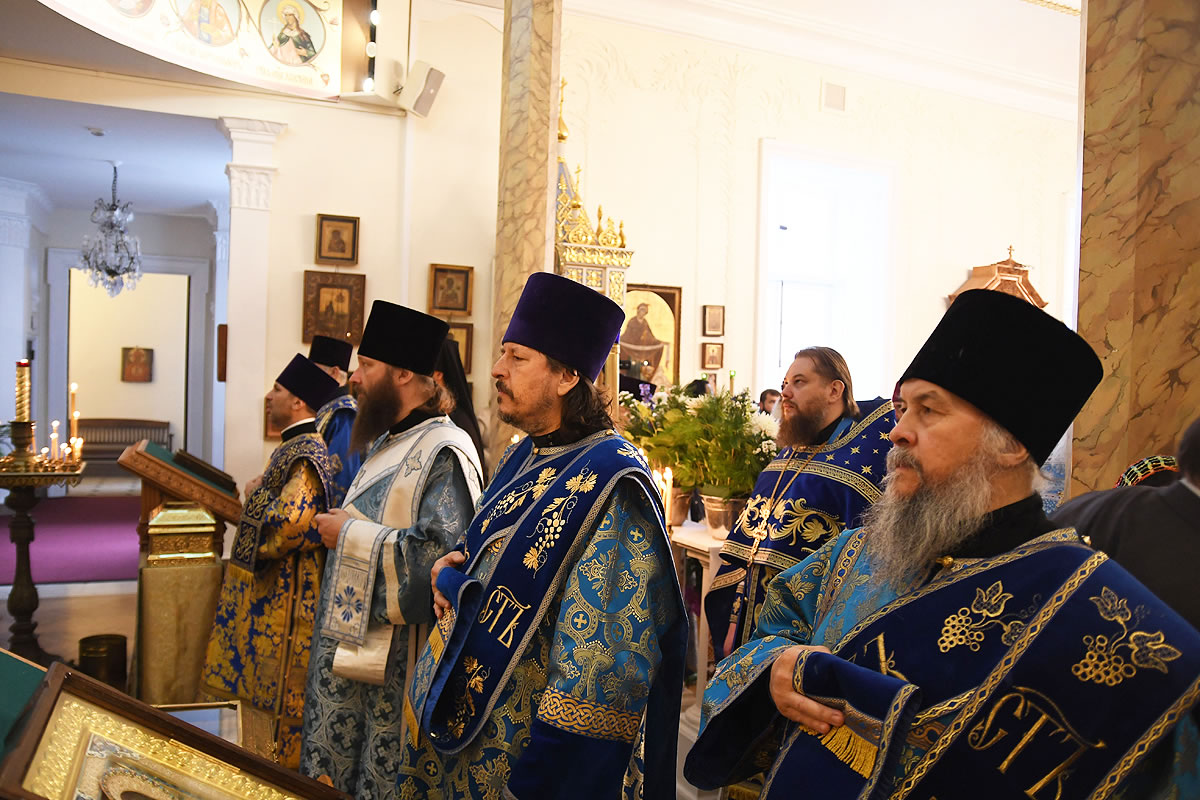 Praying in the church were Abbot Nicodemus (Balyasnikov; dean of St Nicholas Patriarchal Cathedral in New York City), Archpriest Vasily Yurina (cleric of Holy Myrrh-Bearers Church), Abbot Eutychius (Dovgan, Rector of St Nicholas Skete in Freehold, NJ), Abbot Zosimas (Krampis; Rector of the Synodal English Mission), and Deacon Dimitry Lisan (cleric of St Alexander Nevsky Cathedra in Howell, NJ).