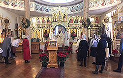 Concelebrating with Bishop Nicholas at Liturgy were: Archimandrite Elevferiy (Skiba; dean of Our Lady "The Inexhaustible Chalice" Church in Brooklyn, NY), Archpriest Edward Chervinsky (cathedral cleric), Hieromonk Lavr (Solomonov; cleric of " Inexhaustible Chalice" Church), and Hierodeacon Panteleimon (Jigalin; diocesan cleric).