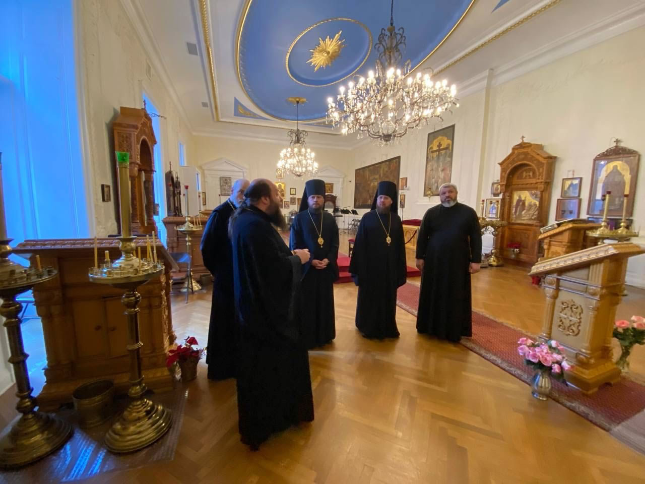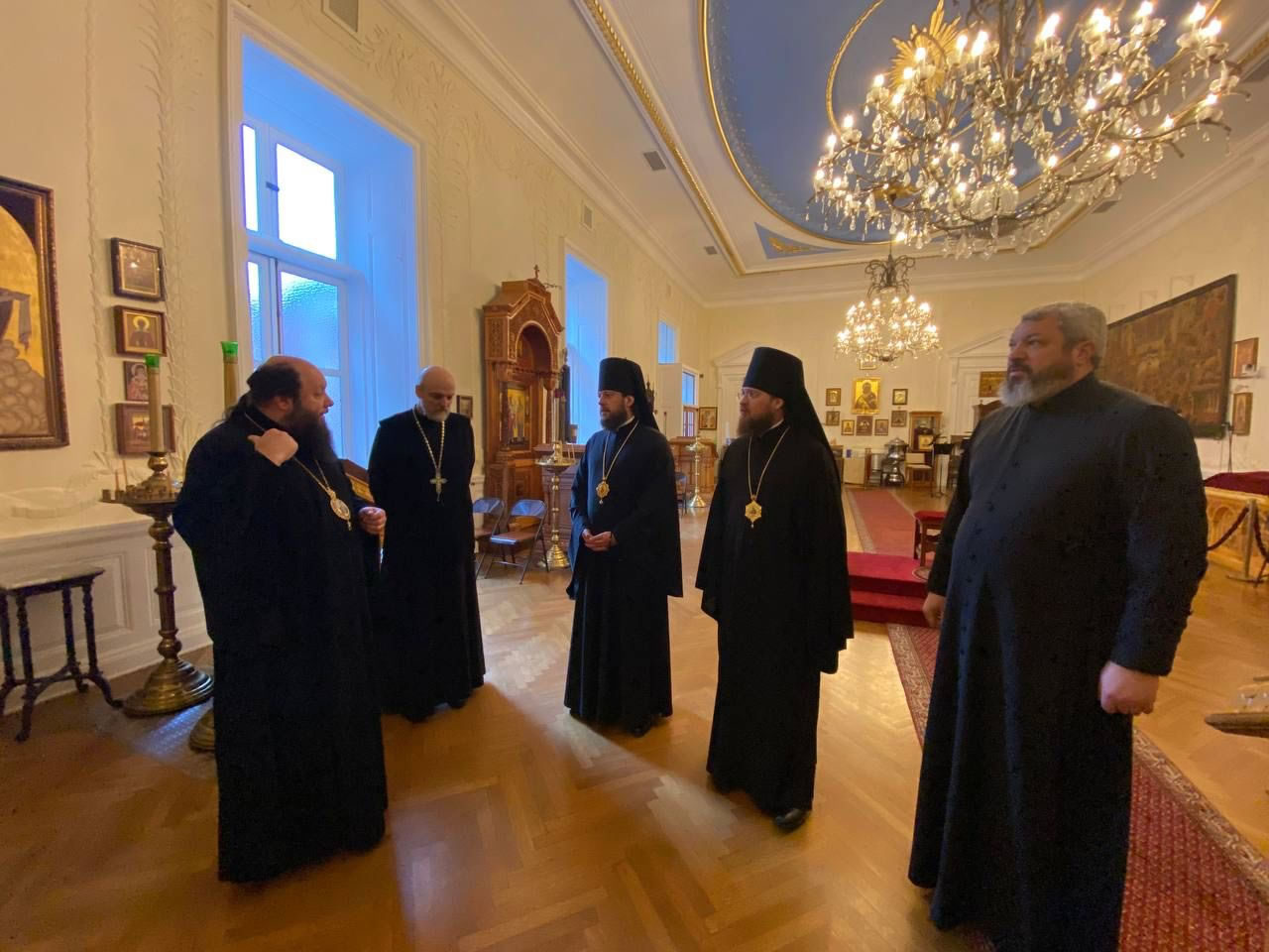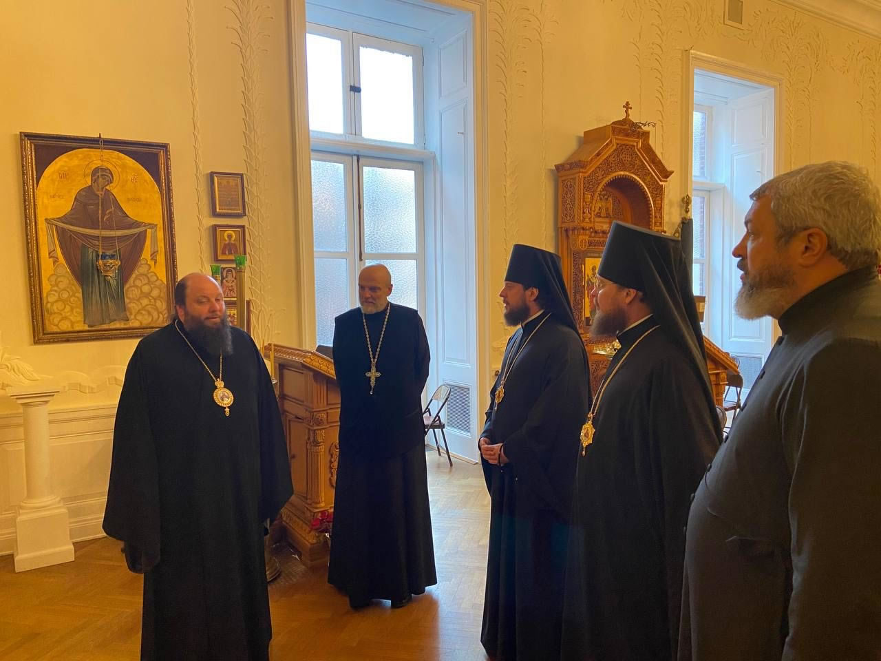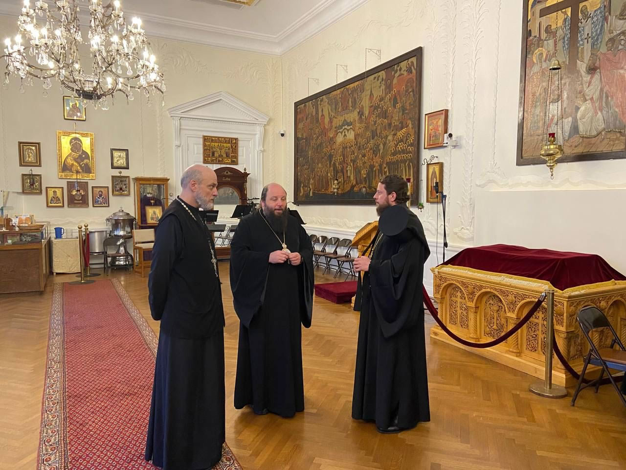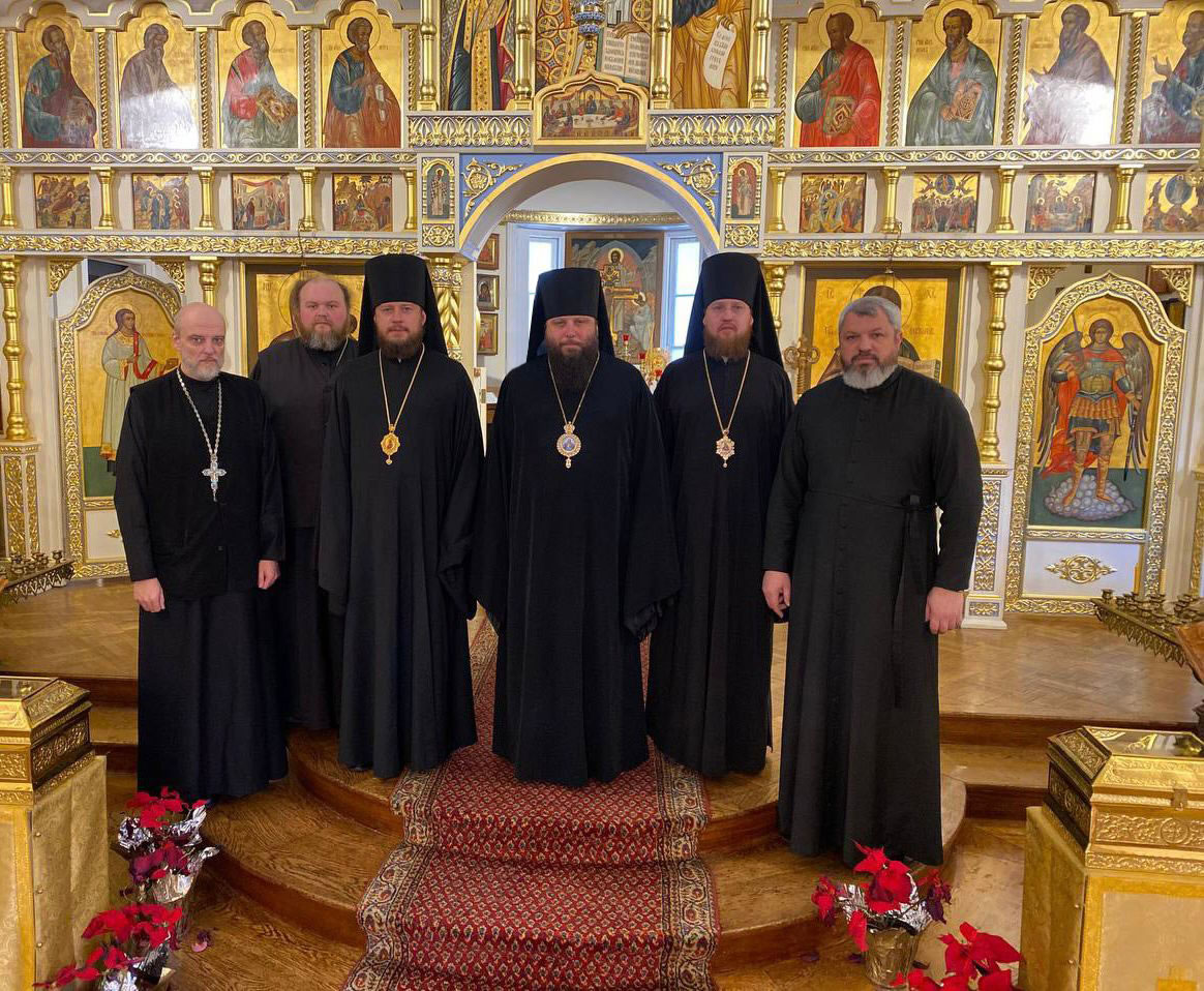 On Wednesday, 9 February, 2022, a pilgrim delegation of the Ukrainian Orthodox Church, headed by His Grace Bishop Viktor of Baryshevka and His Grace Bishop Dionysy of Pereyaslavl’-Khmel’nitsky, visited the Synodal Residence of the First Hierarch of the Russian Orthodox Church Outside of Russia in New York. They were greeted by His Grace Bishop Nicholas of Manhattan, who showed them the Synodal Cathedral of Our Lady “of the Sign,” St Sergiuis Chapel and their sacred items.