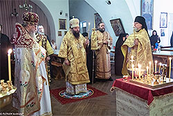 His Grace was joined by Archimandrite Roman (Krassovsky) Chief of the Russian Ecclesiastical Mission in Jerusalem, and convent clergy. Singing at the panihida was the PaTRAM male choir under the direction of Vadim Gan, conductor of the Synodal Cathedral "of the Sign" Choir in New York City. Praying in the church was convent rectress Abbess Barbara (Novikova).