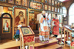 The parish was founded in 1998 in Somerville, near Princeton, NJ, and at first the divine services were held in the home of the priest ? Archpriest David Straut ? and then later in a chapel in the home of one of the mission’s founders. In 2004, the growing parish acquired a former Catholic chapel, built at the turn of the last century. Four years later, the church underwent significant renovations: the altar was expanded, an Orthodox iconostasis was installed, the choir loft was improved, the floor was lacquered, a new ceiling was installed, and new lights and air conditioning were installed. Beautiful hand-painted icons were installed in the iconostasis. Parishioners wonderfully adorned the church with flowers and floral arrangements for the feast day.