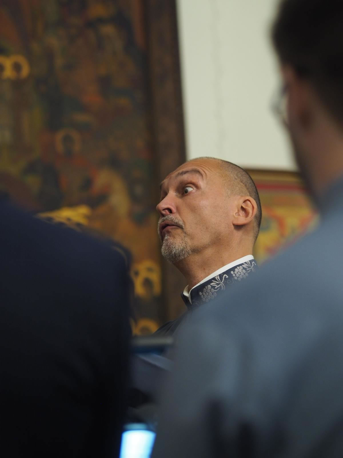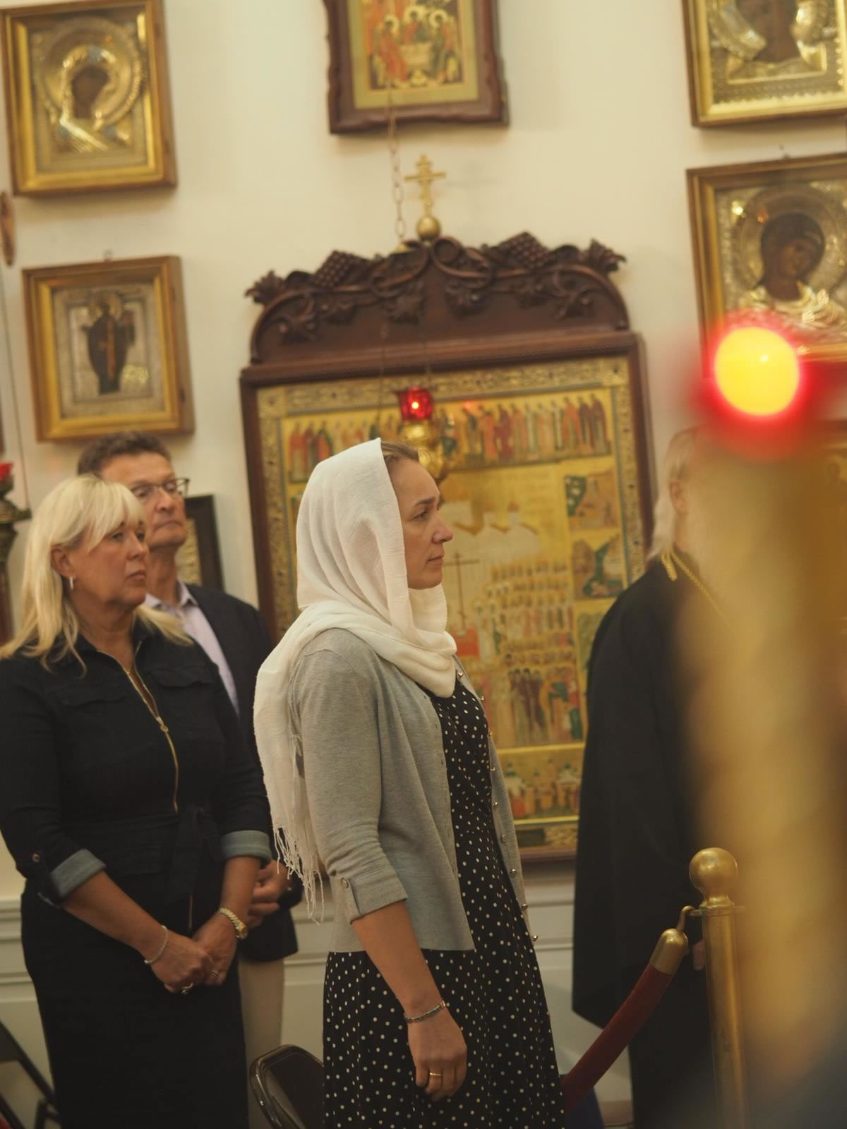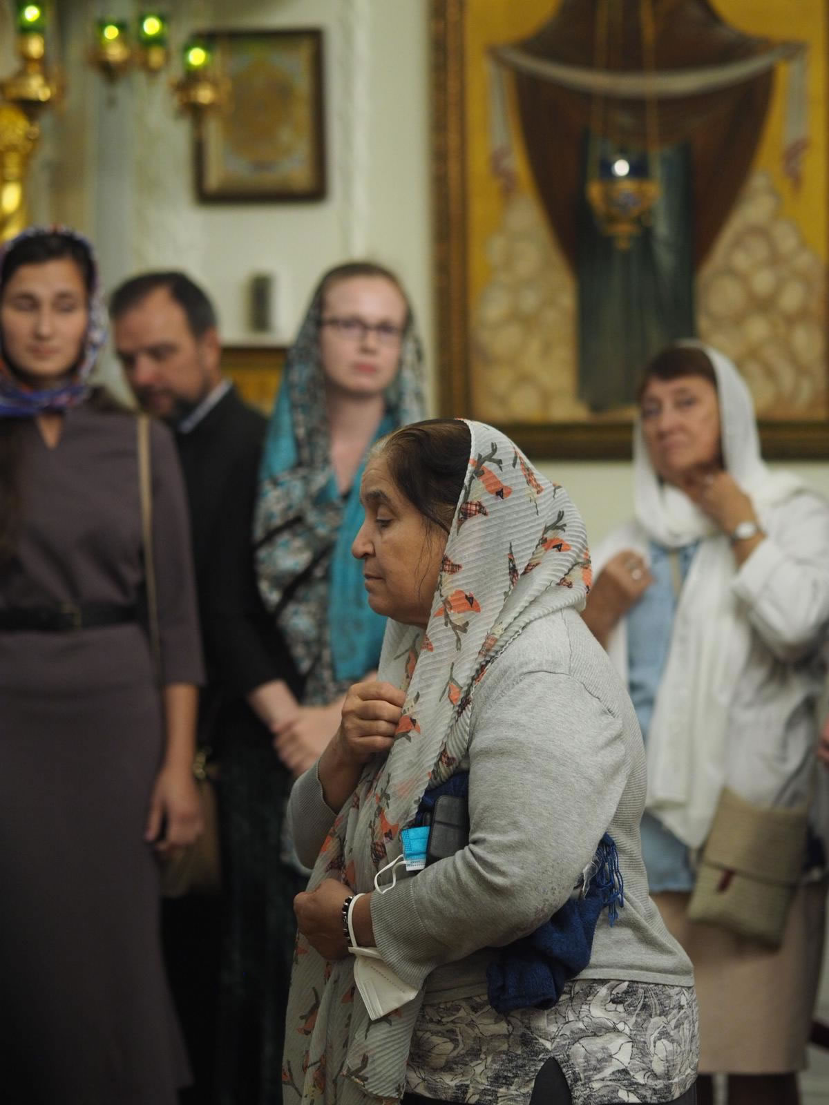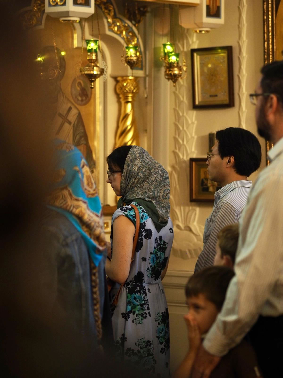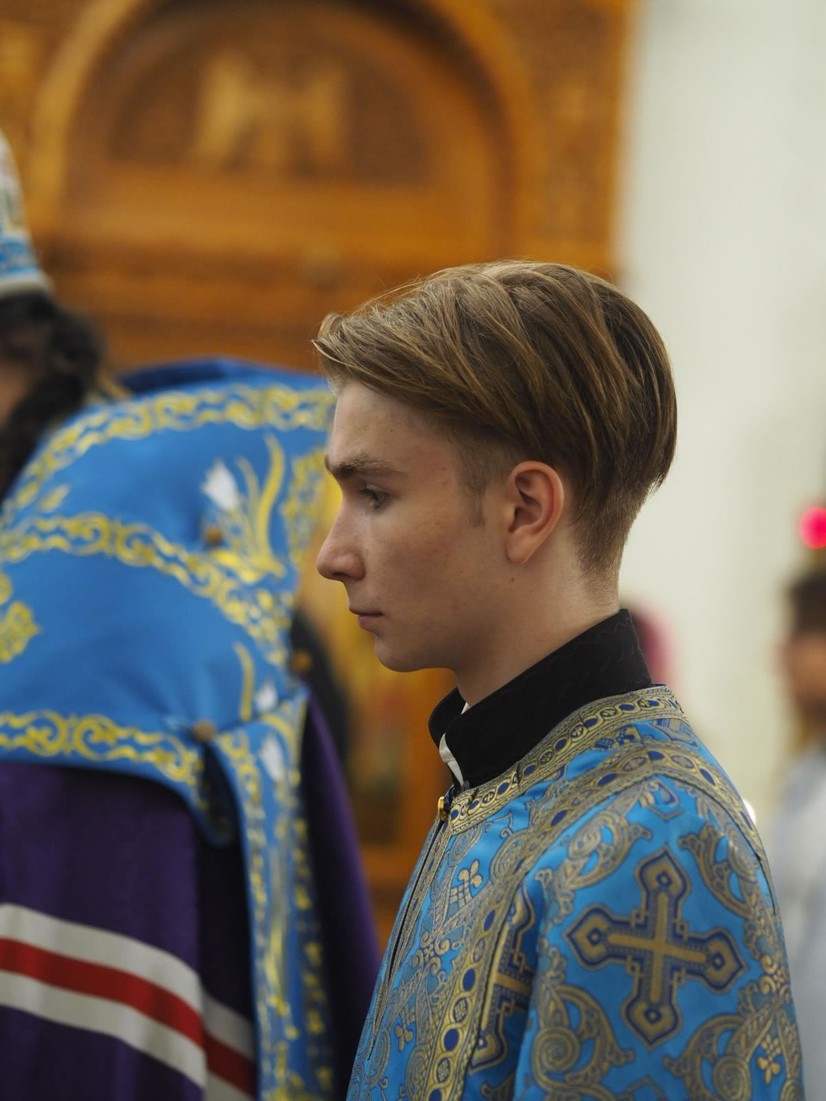 On Saturday, 17 September, 2022, at the end of all-night vigil at the Synodal Cathedral of Our Lady “of the Sign” in New York, His Grace Bishop Nicholas of Manhattan, newly-elected First Hierarch of the Russian Orthodox Church Outside of Russia, emerged through the Royal Doors to the ambo in his black klobuk and common episcopal mantle. His Eminence Metropolitan Mark of Berlin and German and His Eminence Archbishop Kyrill of San Francisco and Western America then endowed the blue mantle and white klobuk to him, which he donned with the aid of attending subdeacons.