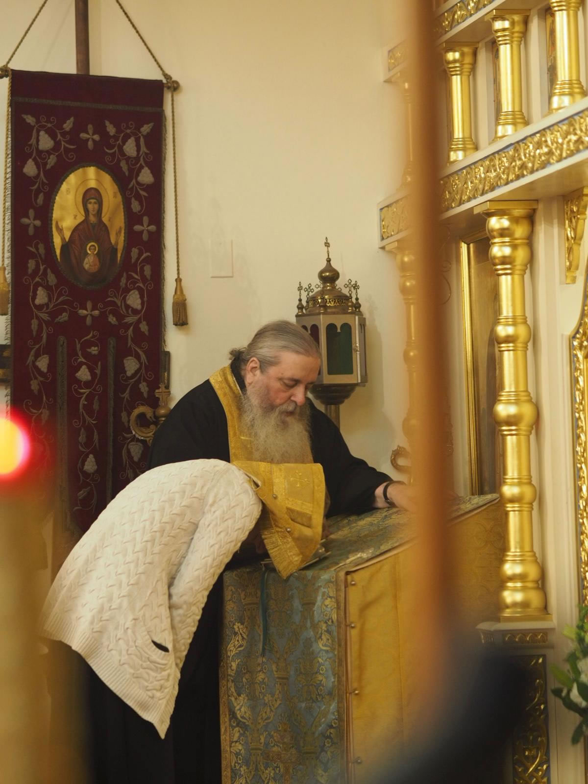During the vesting, Metropolitan Mark exclaimed “Axios” (“he is worthy”), which was repeated by the present archpastors, which was repeated by the choir. The new Metropolitan Nicholas then blessed the clergy and congregation.