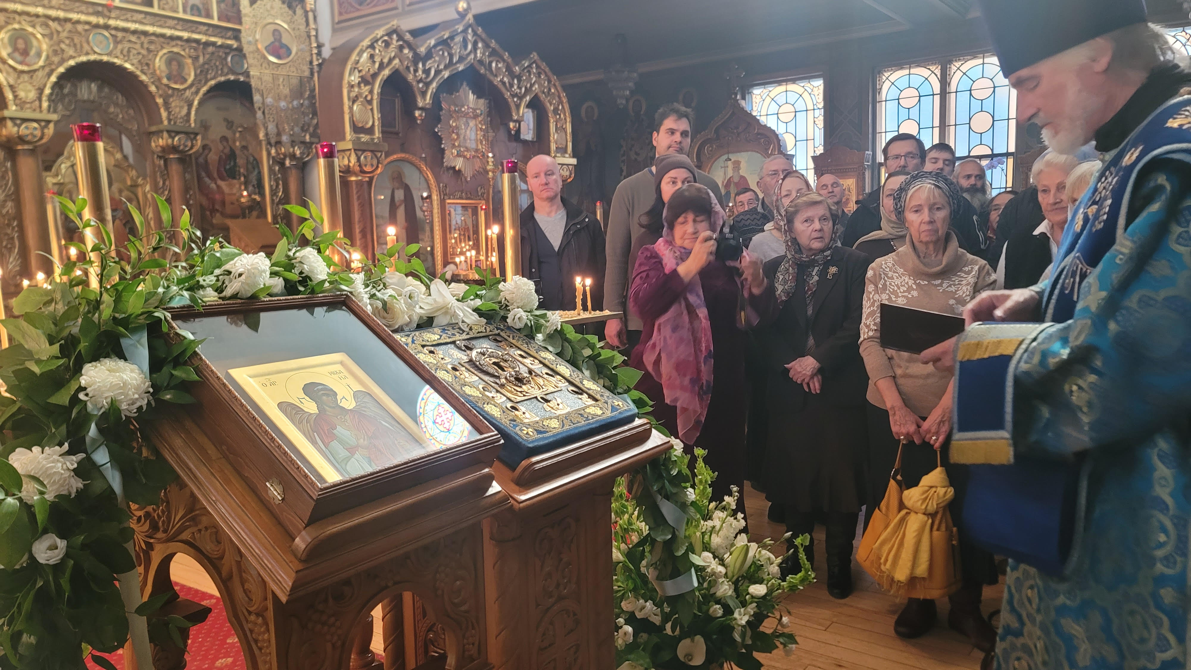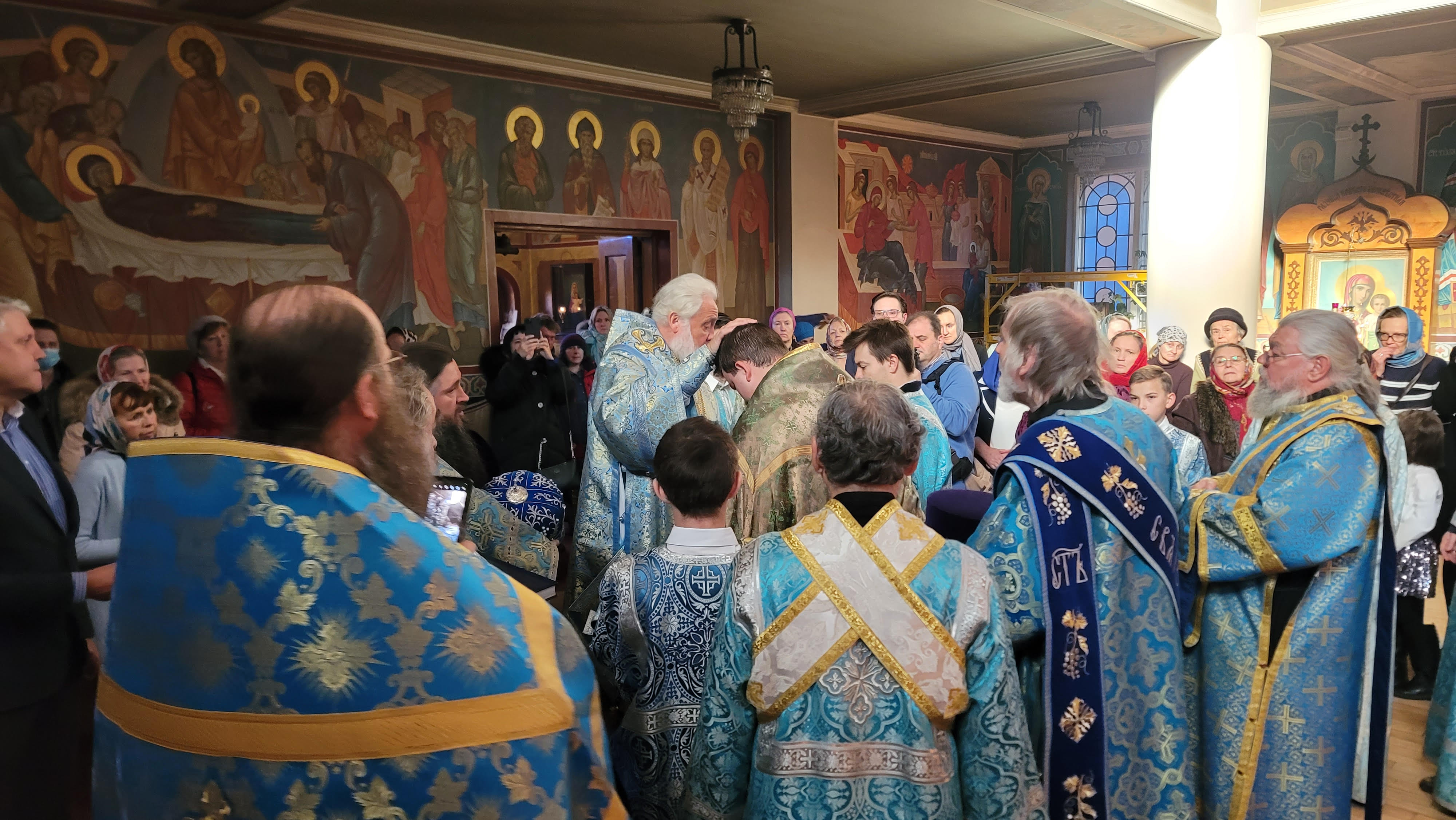The visit of the Kursk-Root Icon of the Mother of God "of the Sign" to Canada concluded on the feast of Archangel Michael and the Heavenly Hosts on 21 November, 2022. His Eminence Archbishop Gabriel of Montreal and Canada celebrated Divine Liturgy along with the cathedral clergy: Mitred Archpriest Vladimir Malchenko, Archpriest Vyacheslav Davidenko, along with Priest Dmitry Cheremis, Rector of Holy Virgin Protection Church in Hamilton, ON. Also serving were the cathedral’s Protodeacon Alexander Morin and Deacon Andrei Filimonov of St Tikhon Church in Cambridge, where His Eminence had celebrated Divine Liturgy the Sunday before.