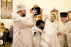 At the Little Entrance, for his labors in preaching Orthodoxy in Pakistan, Metropolitan Nicholas awarded Fr Joseph Farooq the right to wear the nabedrennik and kamilavka.