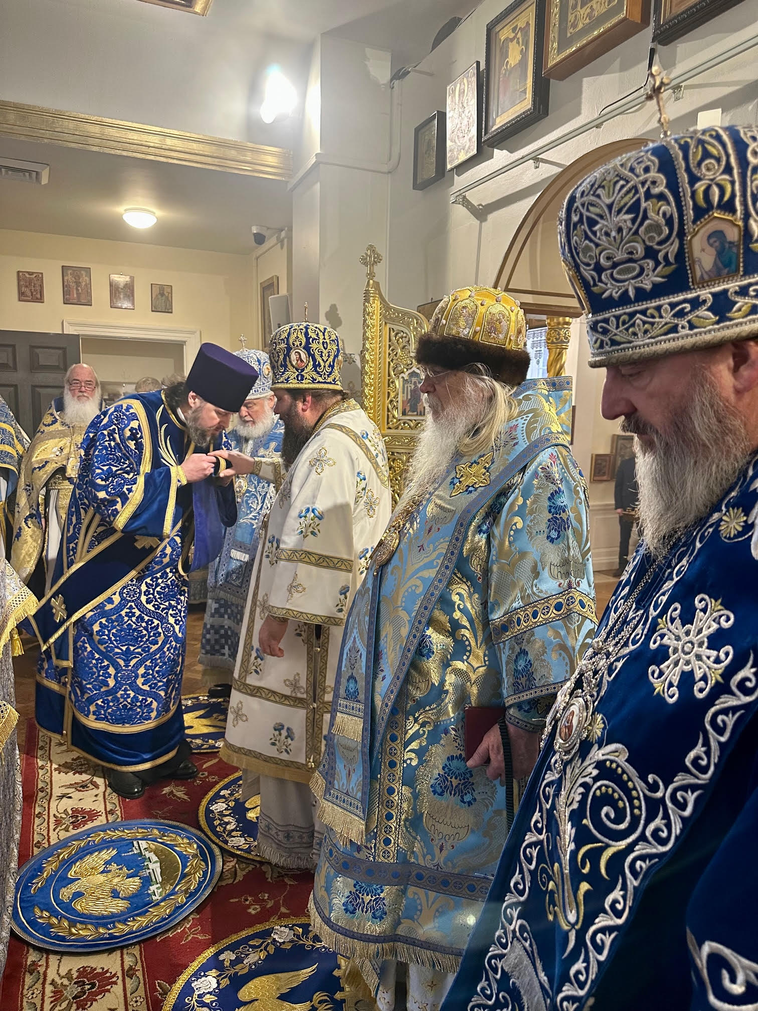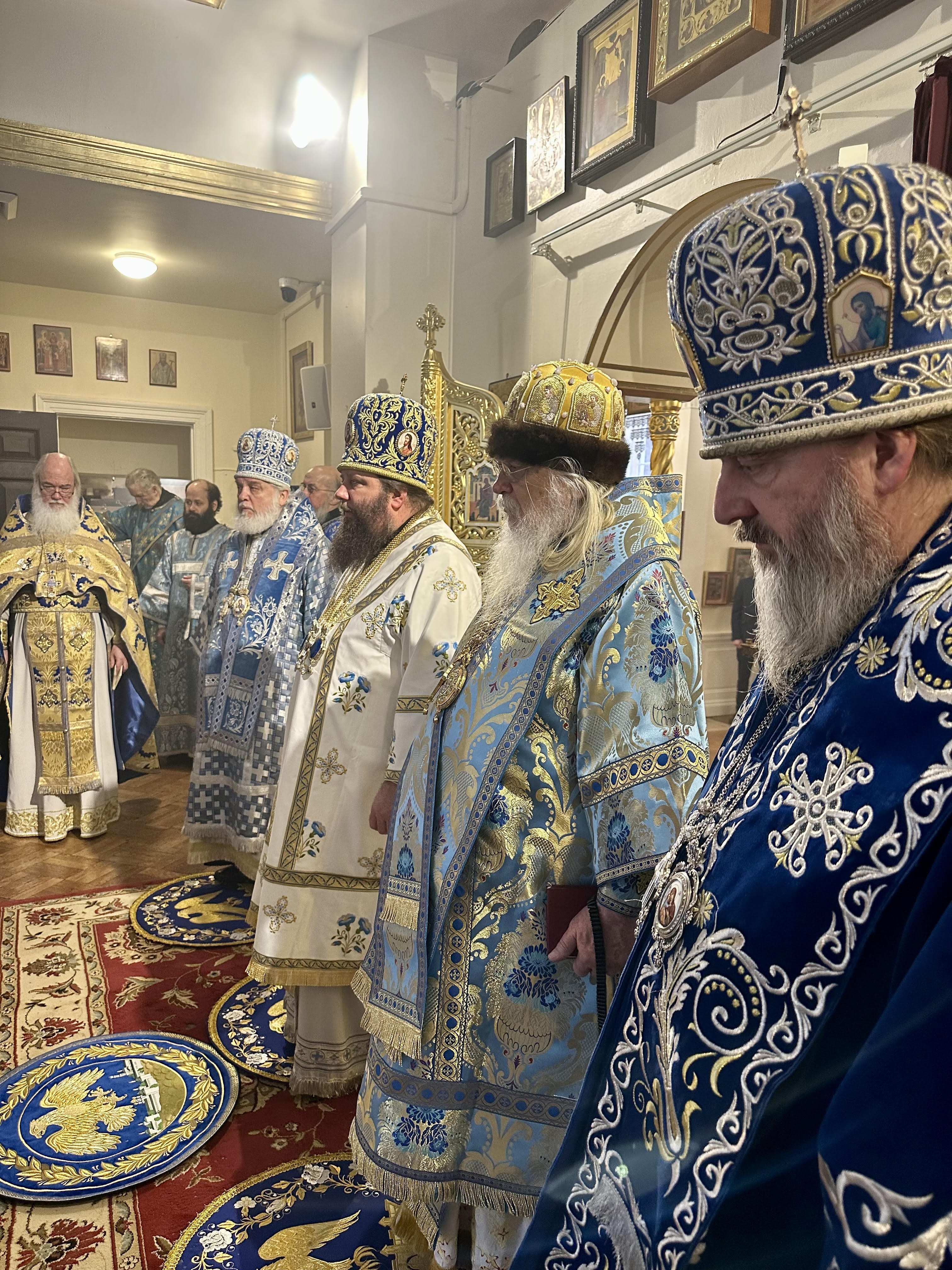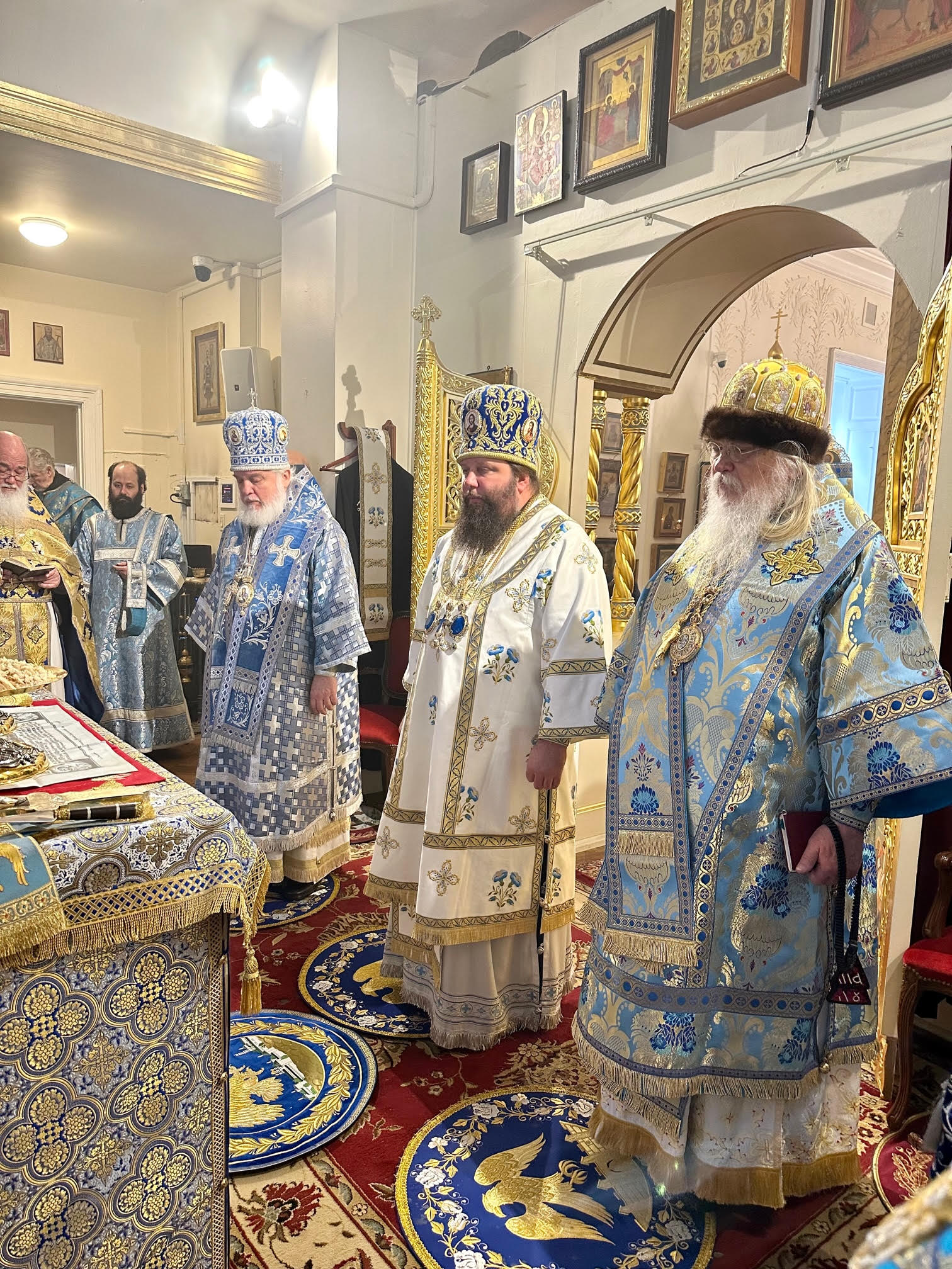 On Thursday, 16 February, 2023, the feast day of St Nicholas, Archbishop of Japan, Equal-to-the-Apostles, His Eminence Metropolitan Nicholas of Eastern America and New York celebrated Divine Liturgy, having performed all-night vigil the evening before at the Synodal Cathedral of Our Lady “of the Sign” in New York. The First Hierarch of the Russian Orthodox Church Outside of Russia was joined by His Eminence Archbishop Gabriel of Montreal and Canada; His Grace Bishop John of Caracas and South America and His Grace Bishop Theodosius of Seattle, First Vicar of the Western American Diocese. Also serving were representatives of the Patriarchal Parishes in the USA of the Moscow Patriarchate and of the Serbian Orthodox Church as the choir sang joyfully under the direction of Vadim Gan.