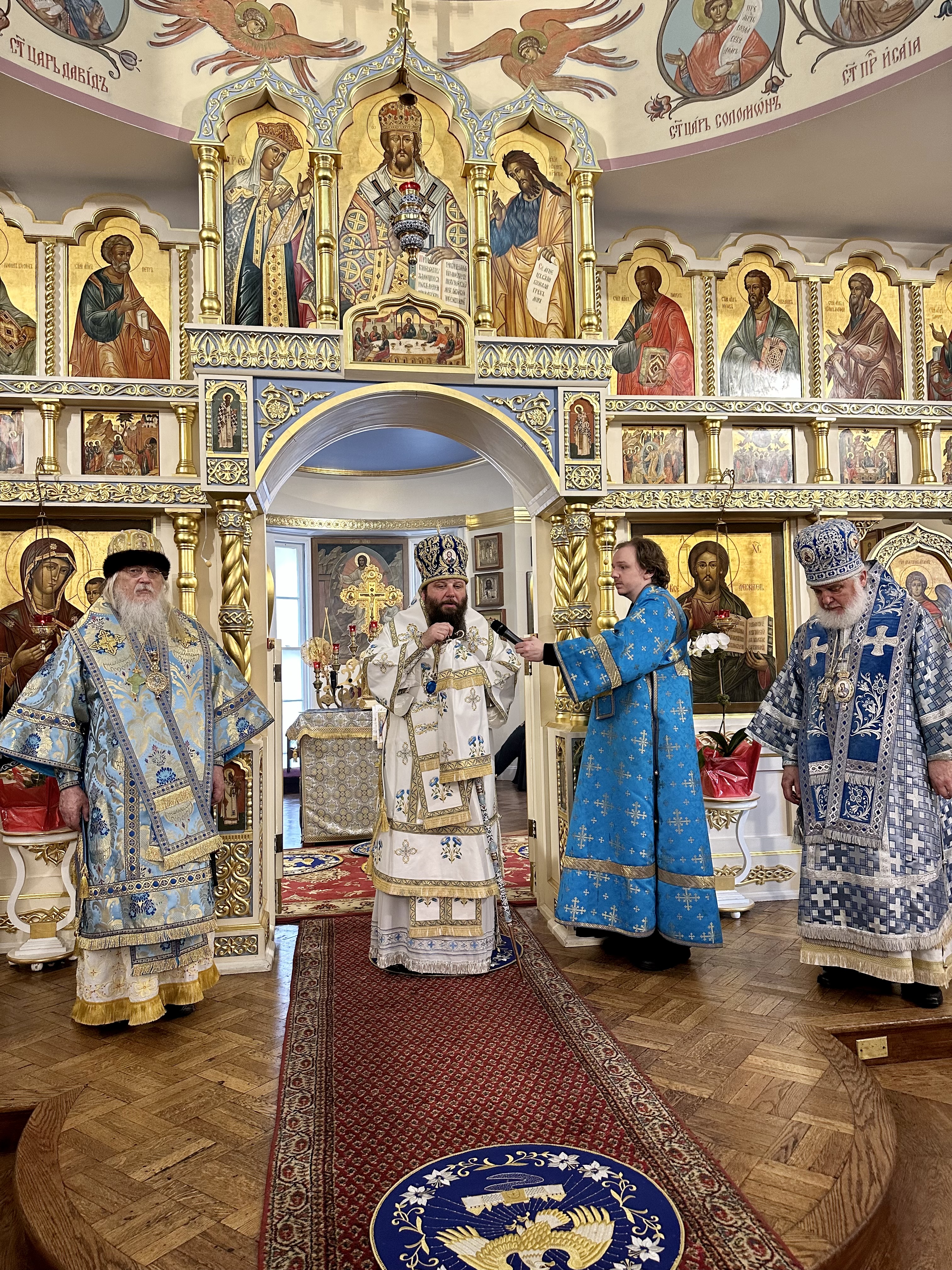After a moleben before the icons of the Meeting of the Lord in the Temple and his heavenly patron, His Eminence delivered a sermon, calling upon everyone to be fervent missionaries of their faith, emulating St Nicholas of Japan. Metropolitan Nicholas issued an appeal for prayers for the persecuted flock of the Ukrainian Orthodox Church headed by His Beatitude Metropolitan Onouphry, as well as for those who suffered from the earthquakes in Syria and Turkey, and to help the victims through the Fund for Assistance to the Russian Orthodox Church Outside of Russia. Archbishop Gabriel then spoke warm words of congratulations on behalf of the members of the Synod of Bishops, wishing him God’s abundant aid in his difficult burden of providing spiritual nourishment to his flock. He noted that if a priest bears the cross of his parish, a bishop of his diocese, while the First Hierarch bears the cross of tending to the eternal salvation of his entire Church.
