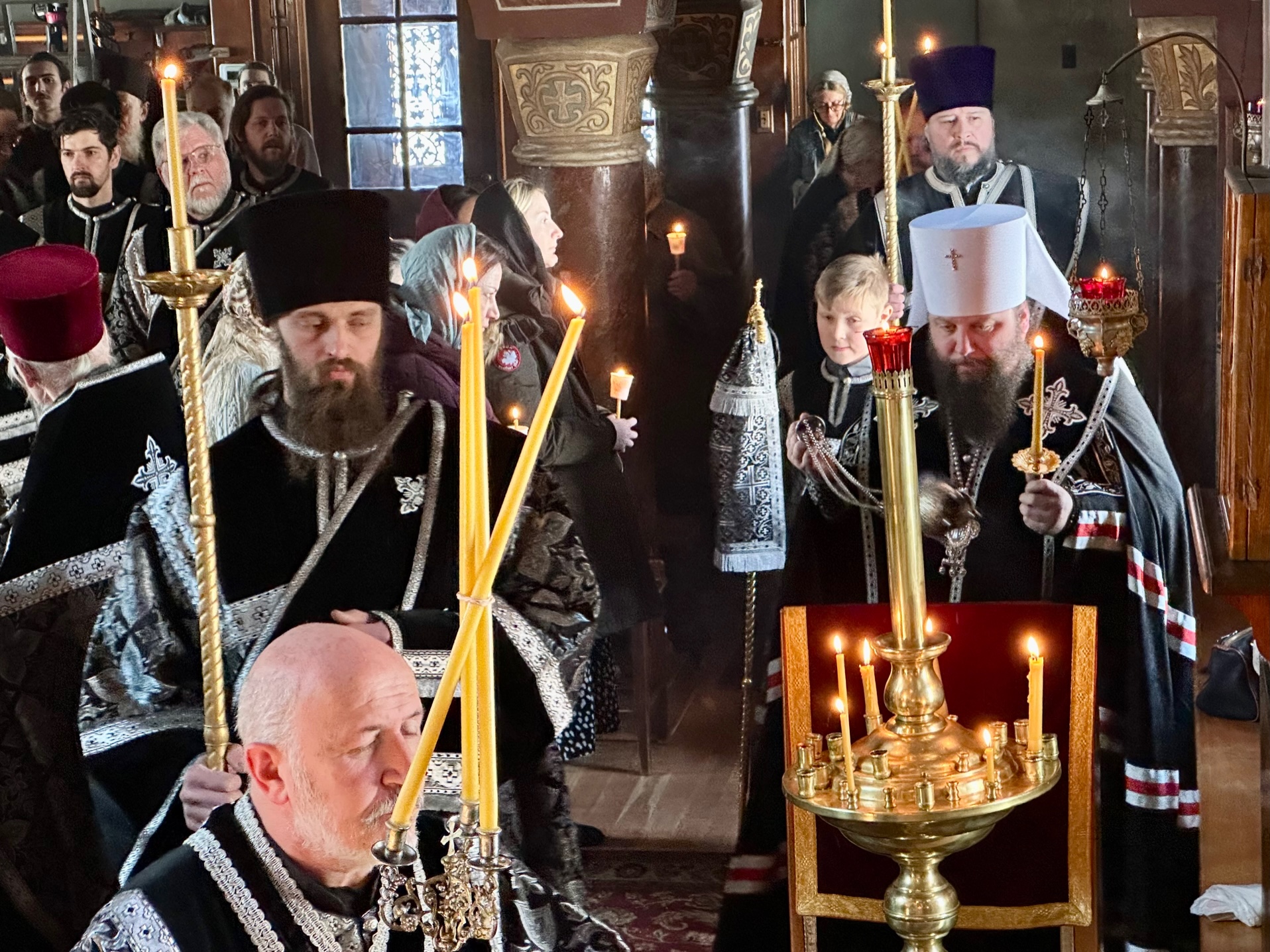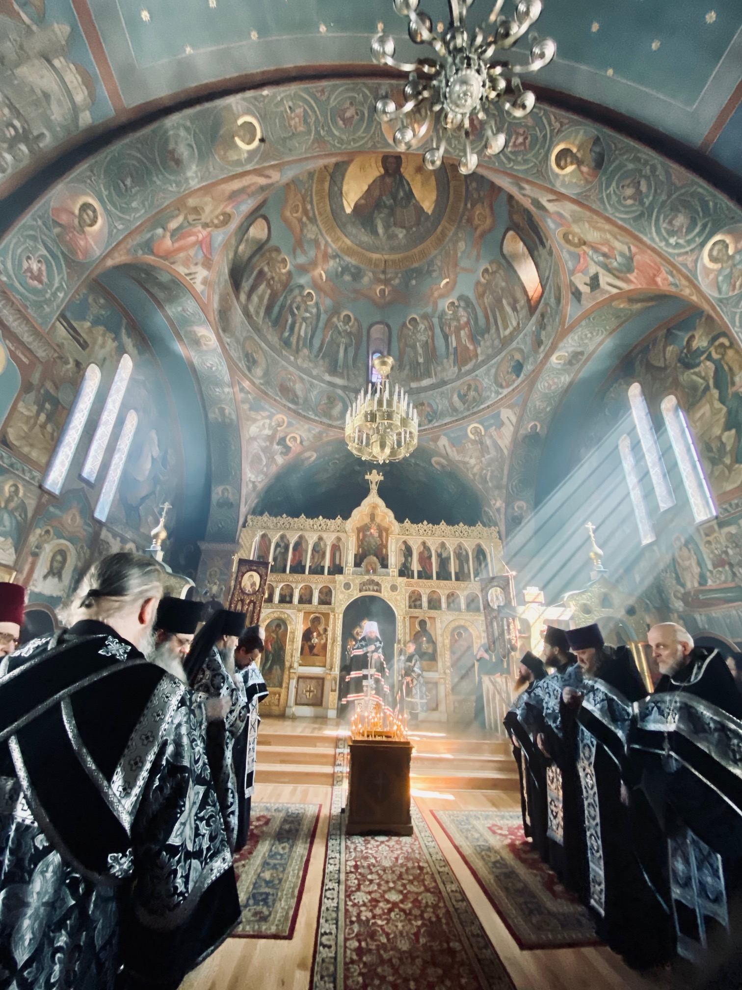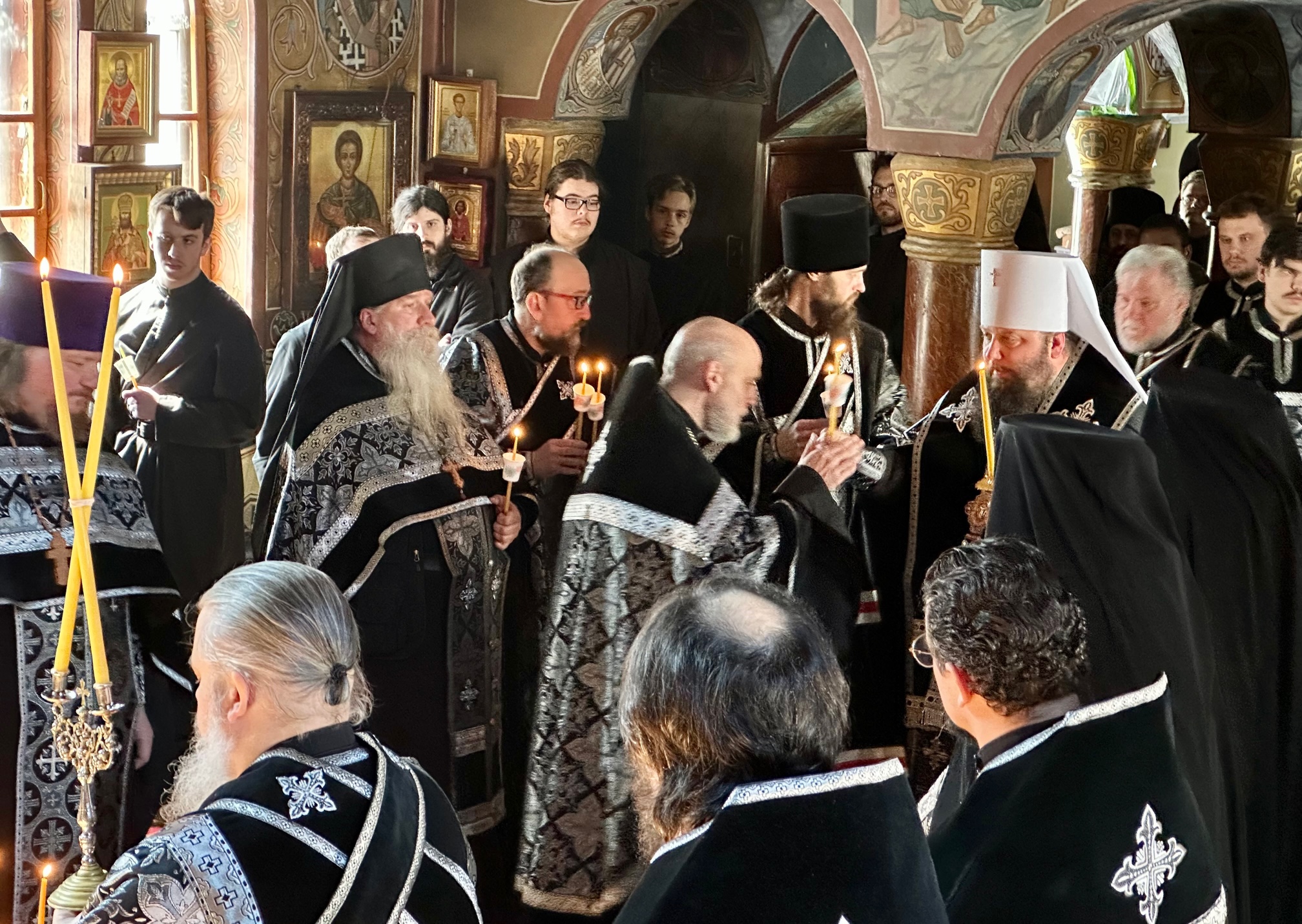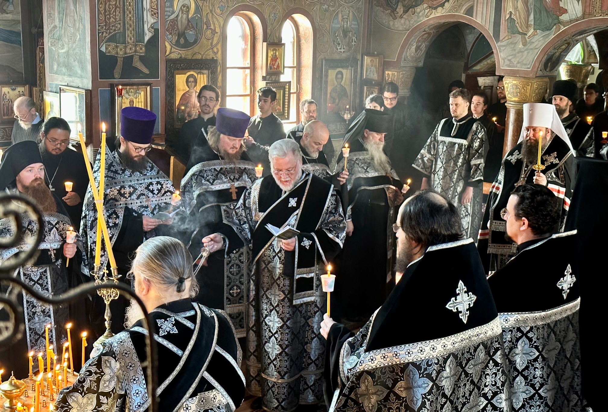 After a luncheon prepared by the monastic brethren, a pannikhida service was performed at Holy Trinity Cathedral, led by Metropolitan Nicholas along with the monastery clergymen, teachers of Holy Trinity Seminary and visiting clerics. Bishop Luke prayed in the altar. At the end of the service, the First Hierarch noted that performing memorial services for the dead always brings him consolation, and called upon everyone not to forget Metropolitan Laurus and the late brothers of the monastery, to visit their graves, pray for their repose, study their biographies and legacy and strive to emulate their example, preserving their memory with grateful love. His Eminence then proceeded to the crypt of the late Metropolitan Laurus, venerated the coffin and prayed for his repose.