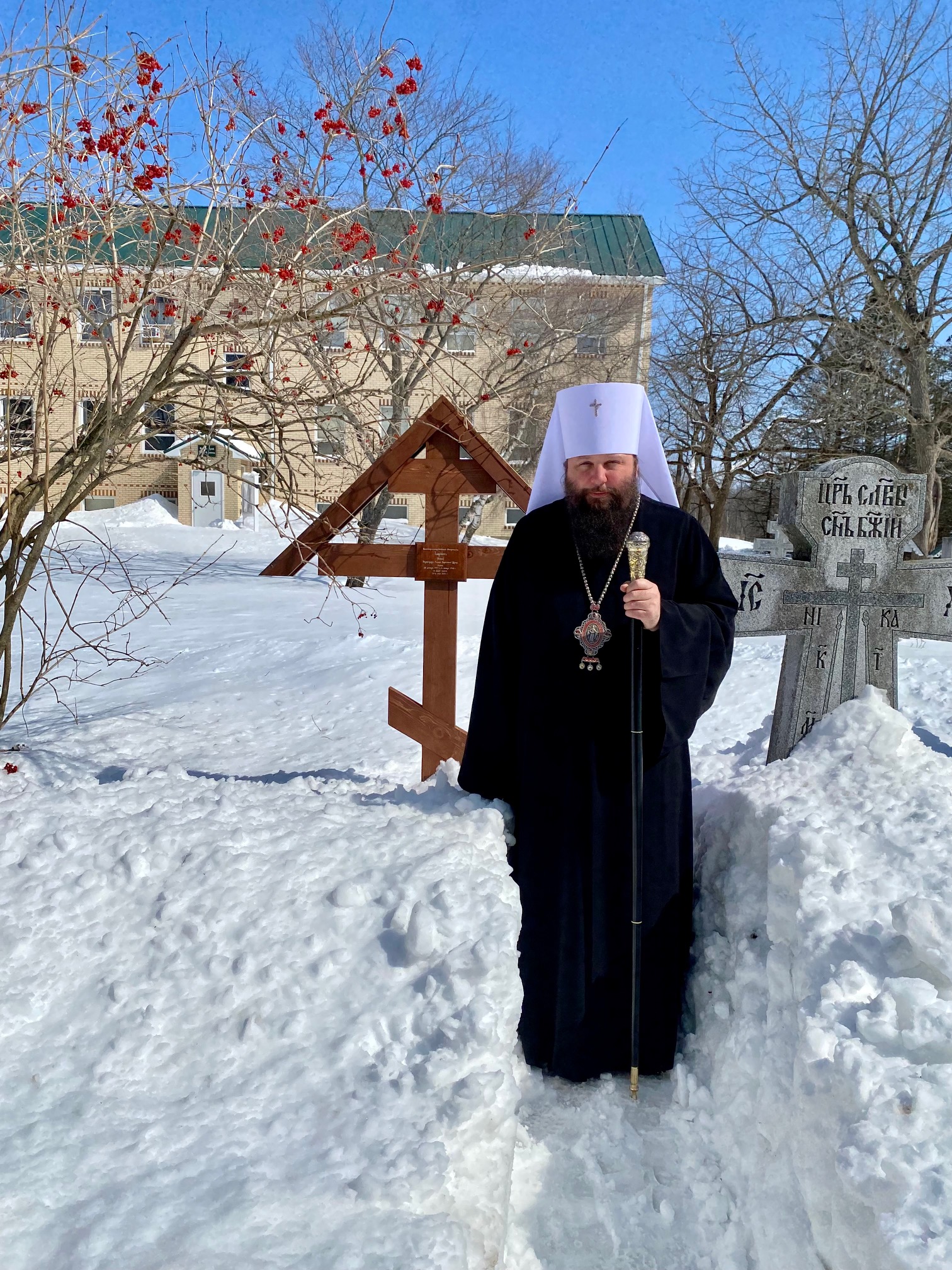 On Thursday, 16 March, 2023, the fifteenth anniversary of the repose of Metropolitan Laurus of blessed memory, His Eminence Metropolitan Nicholas of Eastern America and New York, First Hierarch of the Russian Orthodox Church Outside of Russia, visited Holy Trinity Monastery in Jordanville, NY. His Grace Bishop Luke greeted the Primate and invited him to the Abbot’s reception for a meeting.