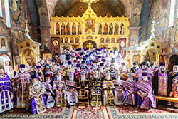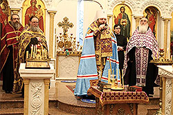 Serving alongside His Eminence were: Archpriest Serge Lukianov (dean of New Jersey), Archpriest George Zelenin (parish rector), Abbot Eutychius (Dovgan; abbot of St. Nicholas Skete in Freehold, NJ), Hieromonk Theognost and Priest Andrew Podymow (clerics of Holy Virgin Protection Church in Nyack, NY), Priest Alexei Klar (cleric of Holy Dormition Convent "Novo-Diveevo" in Nanuet, NY), and Deacon Andrei Logvinenko (parish cleric).