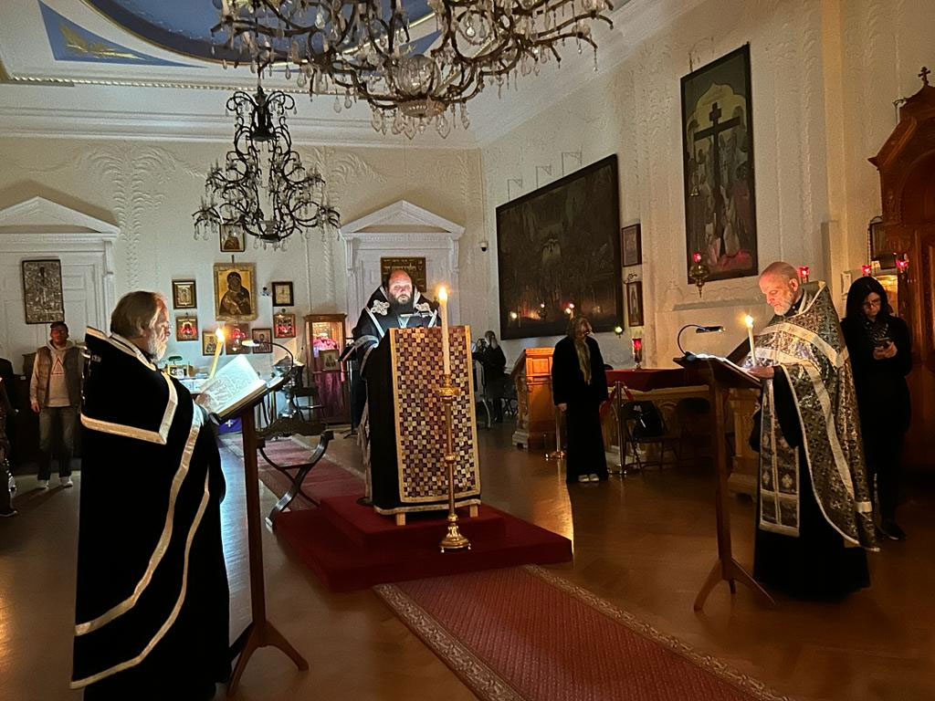 On the evening of March 29, the eve of the 5th Week of Great Lent, His Eminence performed the matins and the Great Canon of St Andrew of Crete at the Synodal Cathedral; he was joined by Cathedral Dean Archpriest Andrei Sommer and Archpriest Serafim Gan.