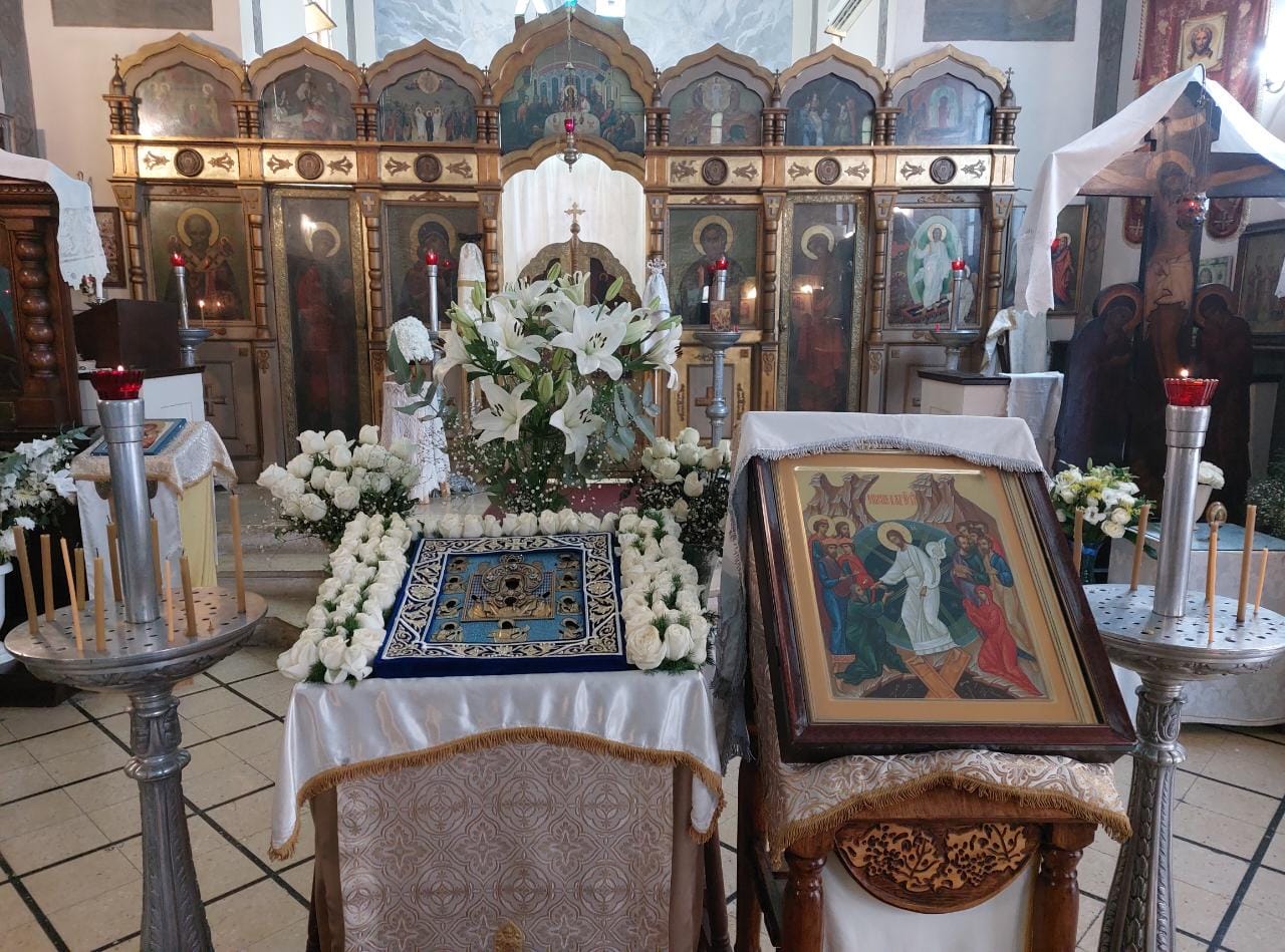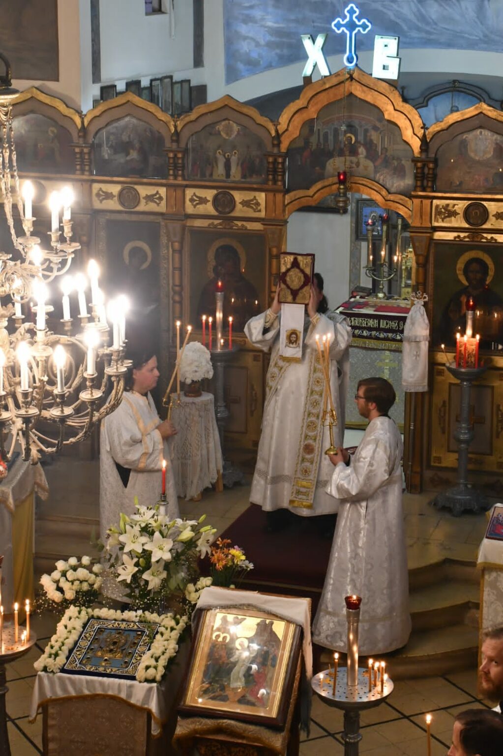 On Sunday, 23 April, 2023, the day known as Antipascha and St Thomas Sunday, the feast day of Resurrection of Christ Cathedral in Buenos Aires, Argentina, Divine Liturgy was celebrated by His Eminence Metropolitan Nicholas of Eastern America and New York, First Hierarch of the Russian Orthodox Church Outside of Russia, who was visiting from New York, bringing the Kursk-Root Icon of the Mother of God "of the Sign,” the main holy relic of the Russian diaspora.