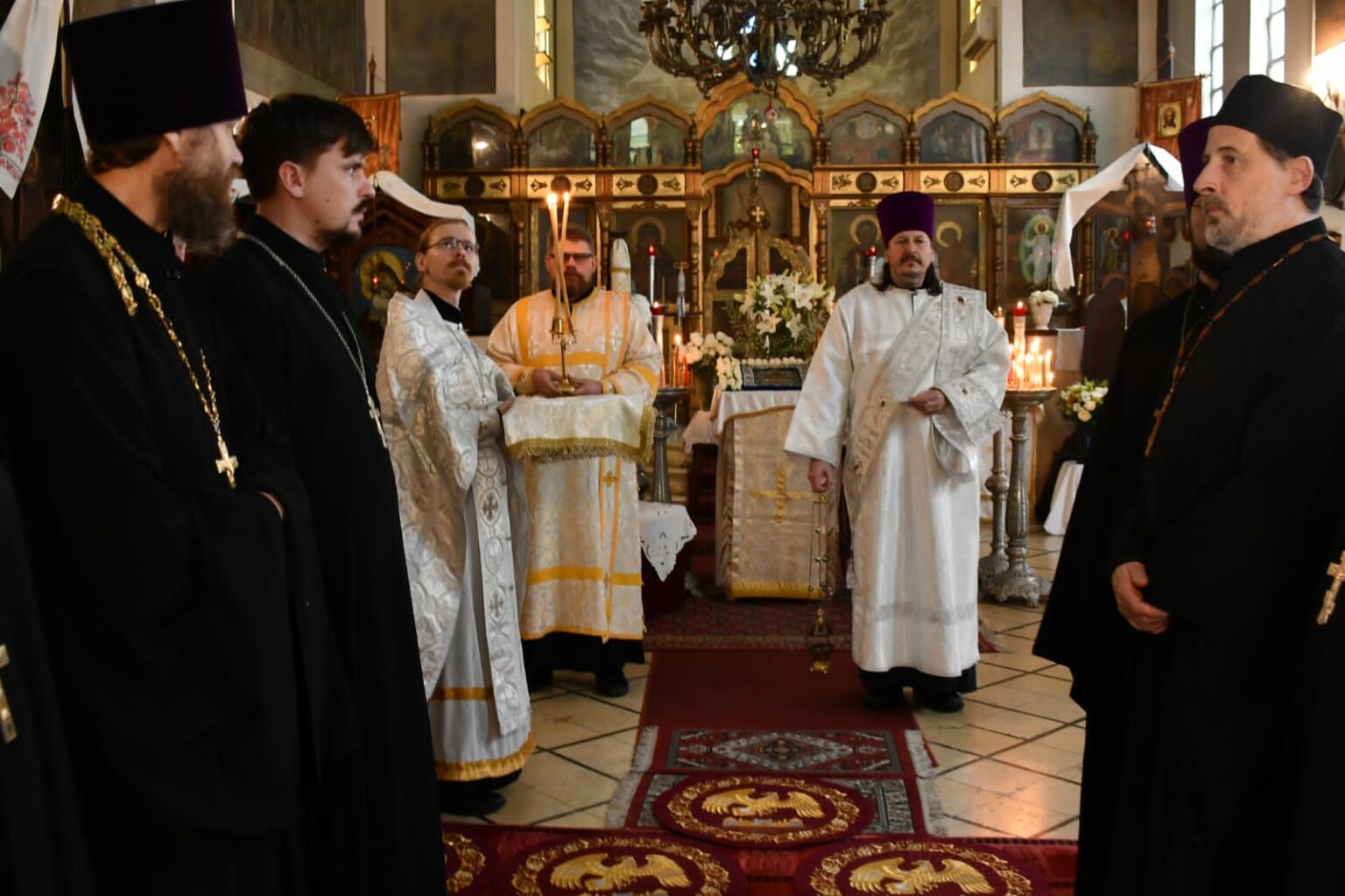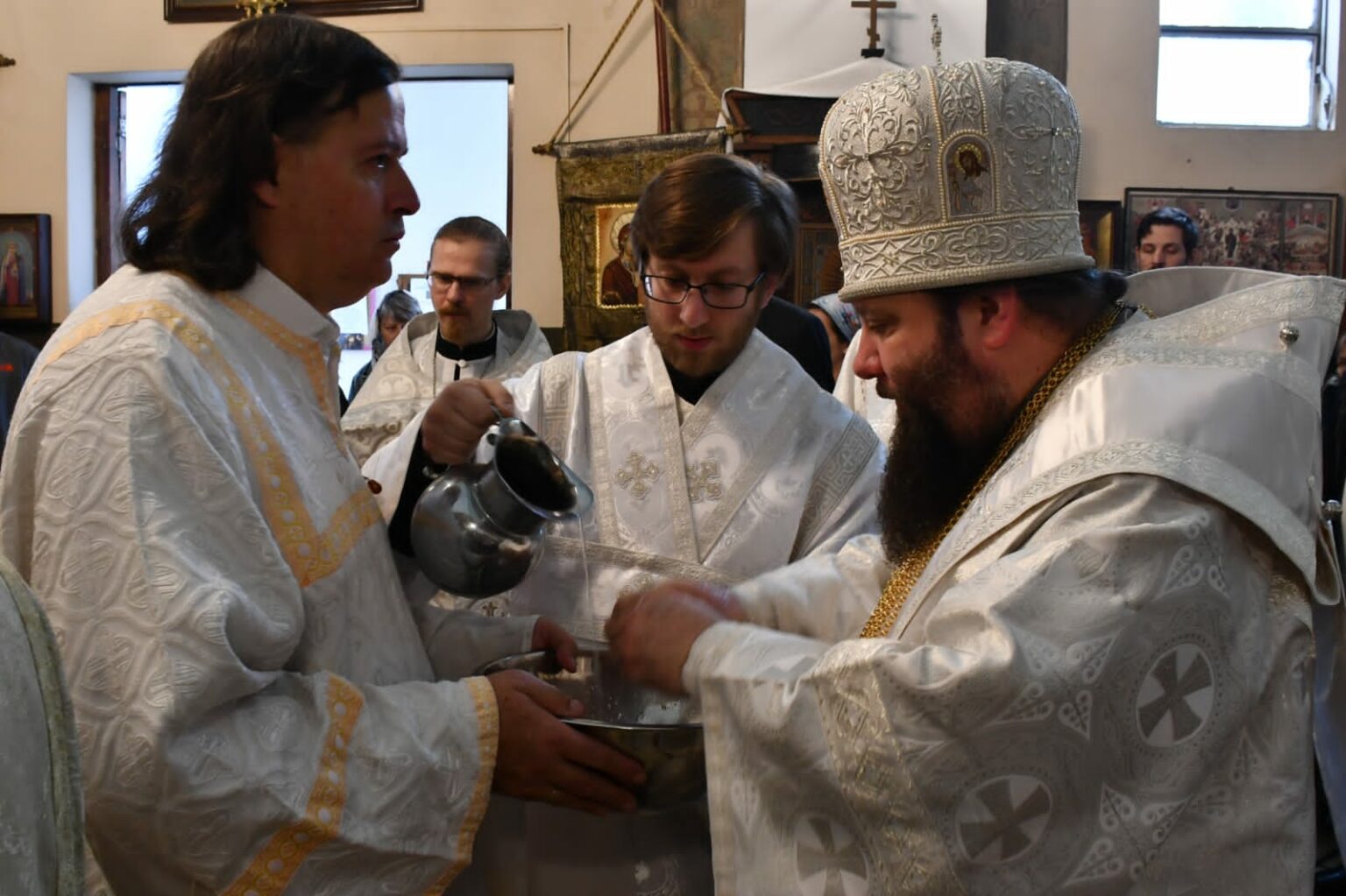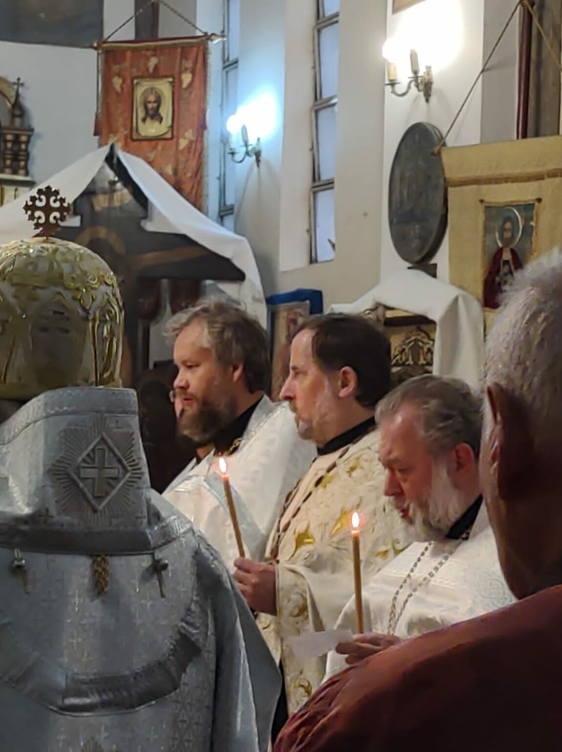 During the minor entrance at Liturgy, Priest Boris Gladyshev was awarded the right to wear the nabedrennik and kamilavka.