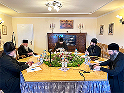 Present in person in Germany were Metropolitan Nicholas, His Eminence Metropolitan Mark of Berlin and Germany, Ruling Bishop of the German Diocese; His Grace Bishop Irenei of London and Western Europe, Ruling Bishop of the Diocese of Great Britain and Western Europe; and the Vicar Bishops of both dioceses: His Grace Bishop Alexander of Vevey (Vicar of Bishop Irenei in Western Europe) and His Grace Bishop Job of Stuttgart (Vicar of Metropolitan Mark in Germany). Participating in the meeting of the Holy Synod via video conference were the other regular Synod members: His Eminence Archbishop Kyrill of San Francisco and Western America, Secretary of the Holy Synod; His Eminence Archbishop Gabriel of Montreal and Canada; His Eminence Archbishop Peter of Chicago and Mid-America; and His Grace Bishop Theodosy of Seattle, Vicar of Archbishop Kyrill in Western America and Deputy Secretary of the Holy Synod. The chief recording secretary of the Synod, Archpriest Serafim Gan, was also present in Germany.