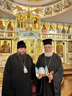 Venerating the altar table of the Synodal Cathedral of Our Lady “of the Sign” and its holy relics, including icons belonging to the Royal Passion-Bearers, the mantle of Tsar-Martyr Nicholas, the reliquary containing the arm of Holy Martyr Elizabeth, the cassocks of St Tikhon of Moscow and St John of Kronstadt, Metropolitan Niphon gave Metropolitan Nicholas a gift of a triptych depicting the Resurrection of Christ.