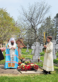 After a memorial trapeza luncheon held at noon, His Eminence performed a pannikhida service at the grave of the sixth Primate of the Russian Church Abroad at the monastic cemetery.