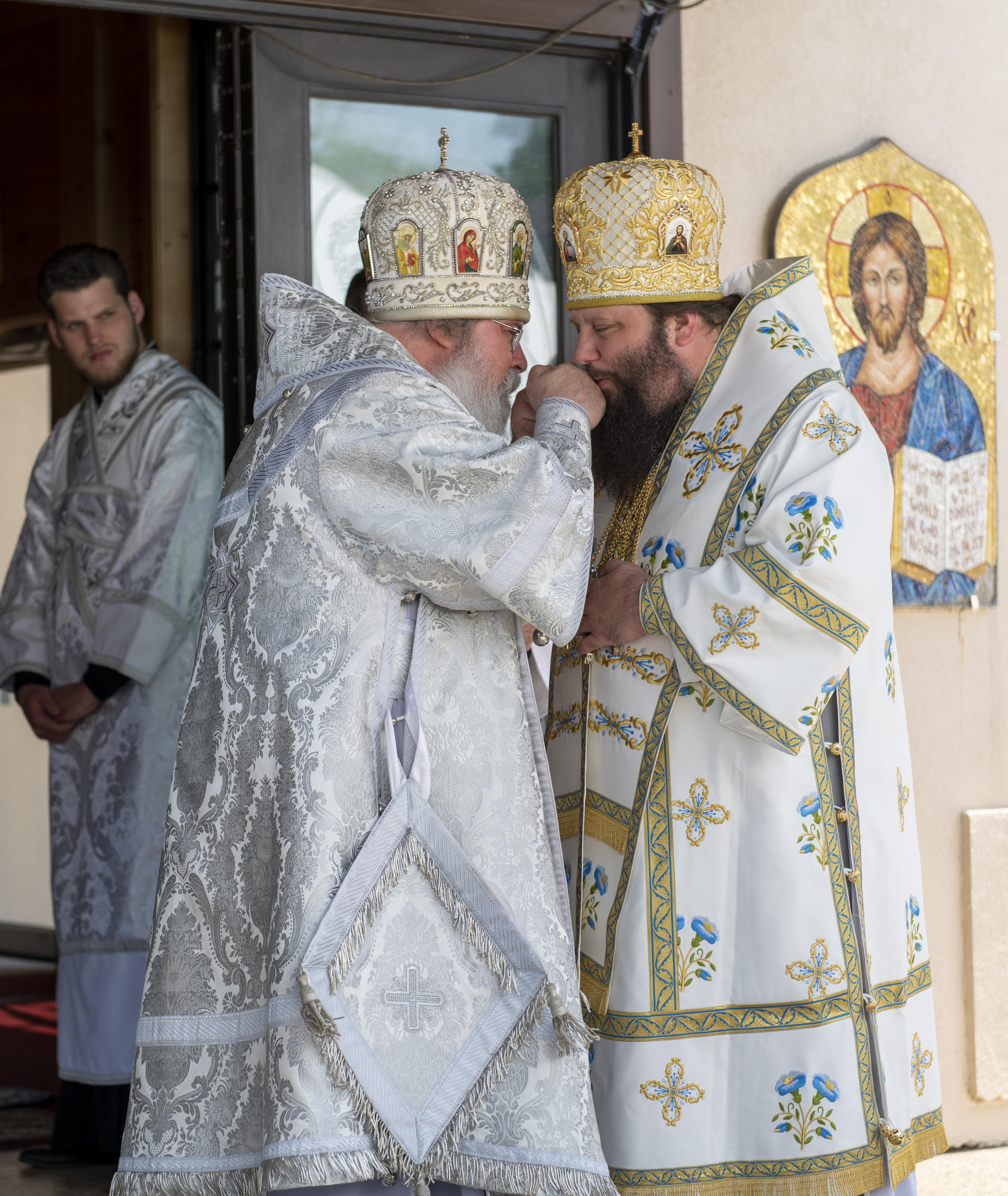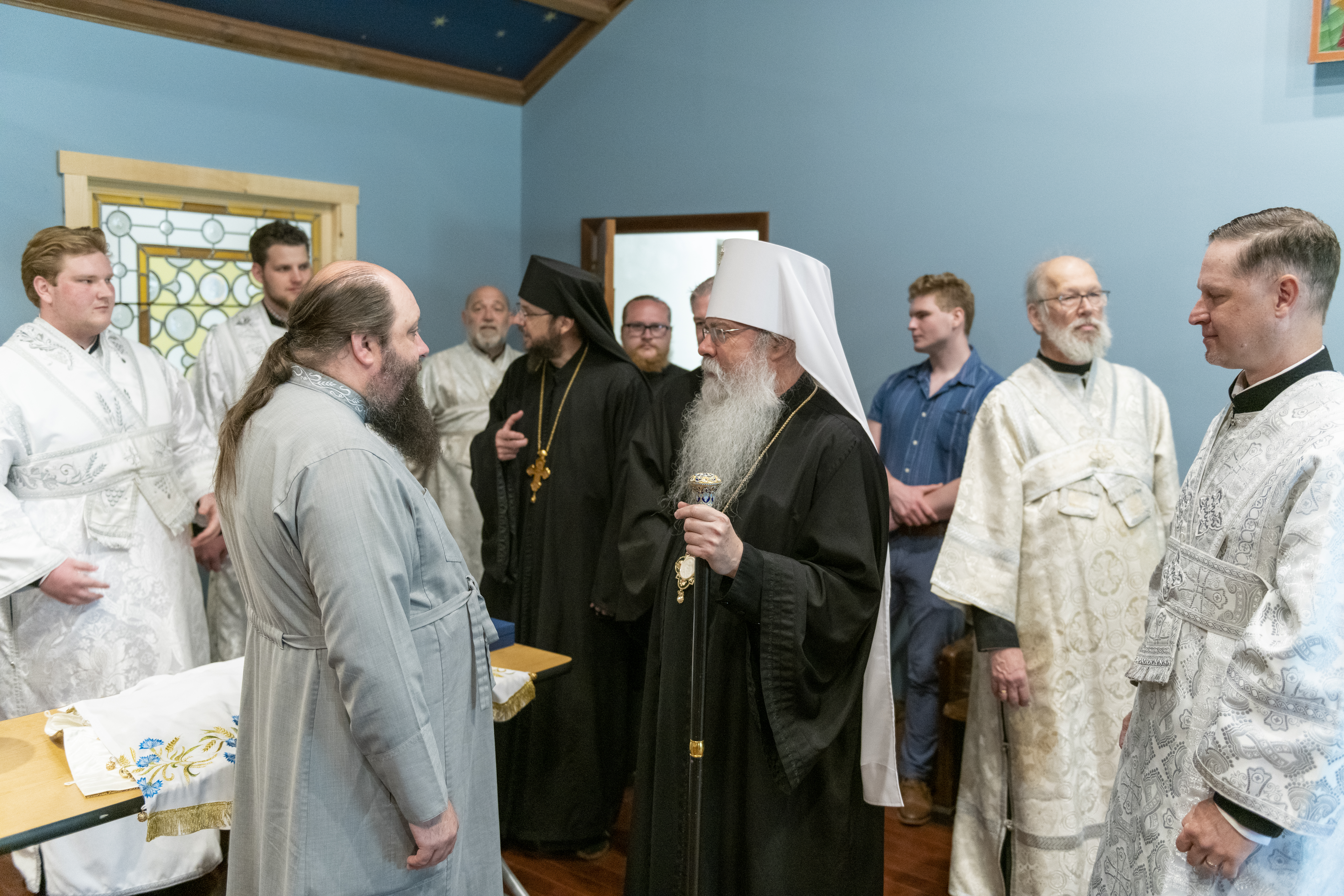 After the services, Fr John hosted the gathered archpastors and delegation of the Russian Church Abroad at his residence. Metropolitan Nicholas then visited the monastery museum and grounds. Kissing the altar table and reliquary of St Alexei Toth and other relics in the monastery cathedral, and bidding farewell to Metropolitan Tikhon, His Eminence departed for Mayfield, PA. That evening, a moleben and Akathist were performed before the Hawaiian-Iveron Icon at St John the Forerunner Cathedral.