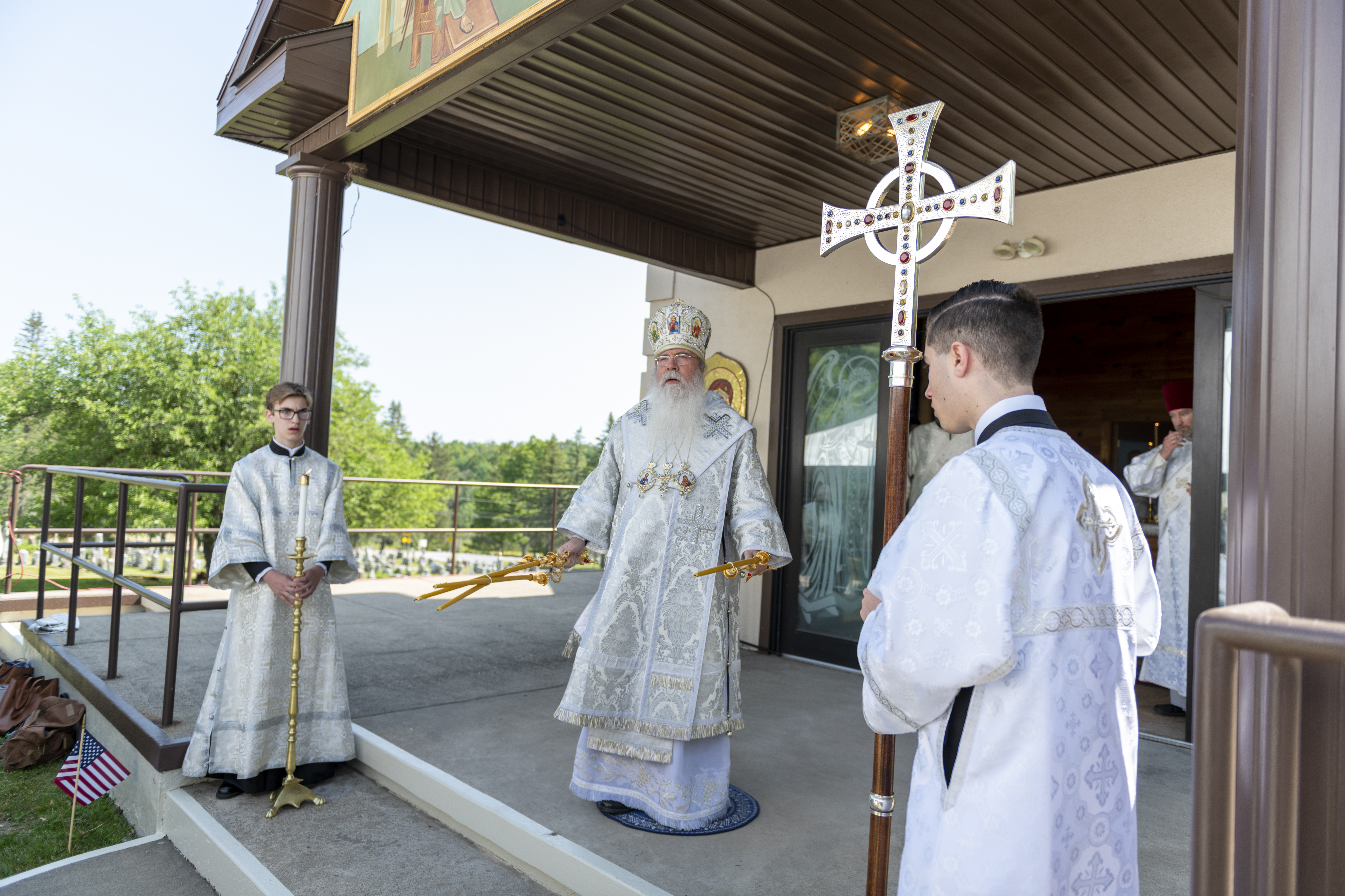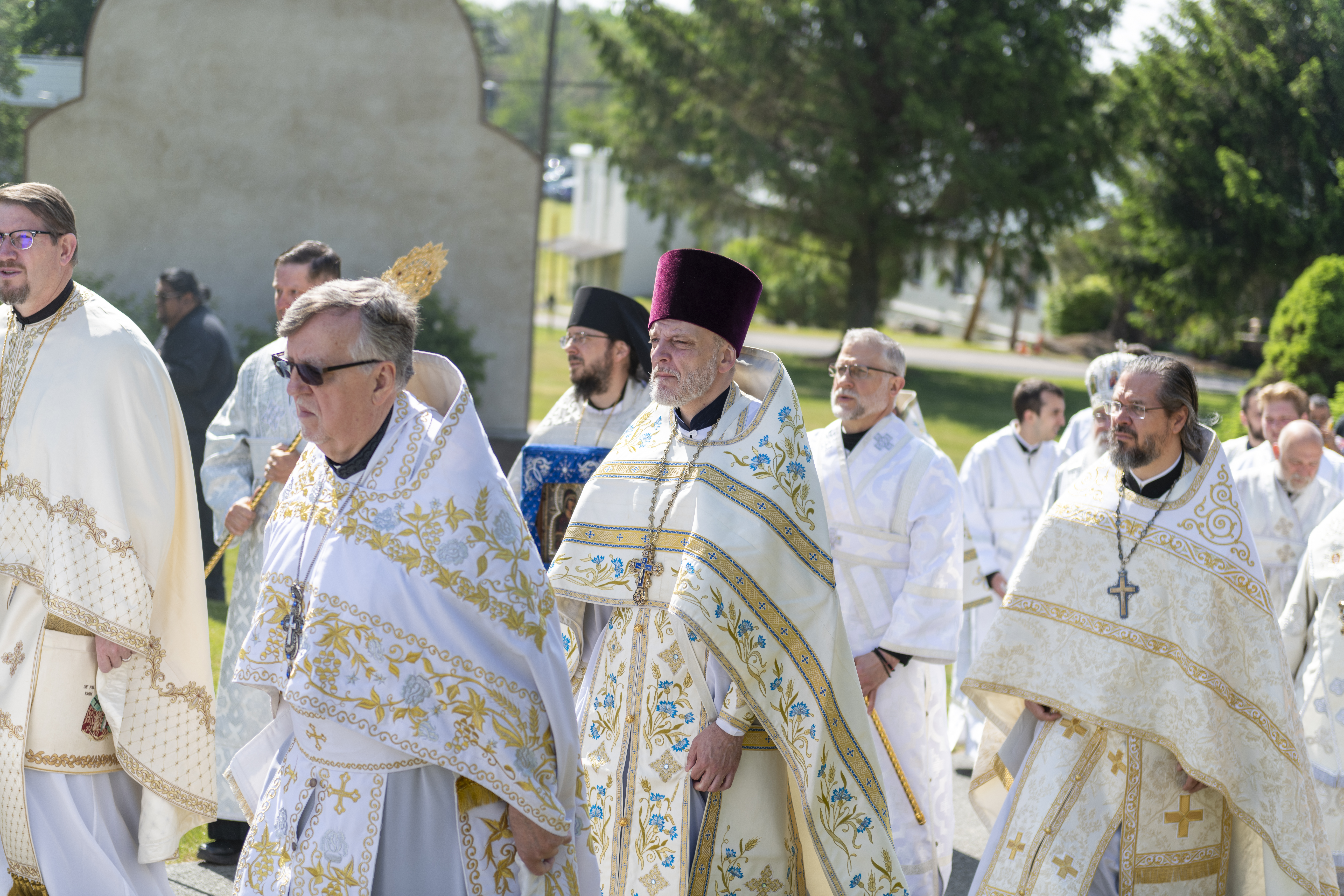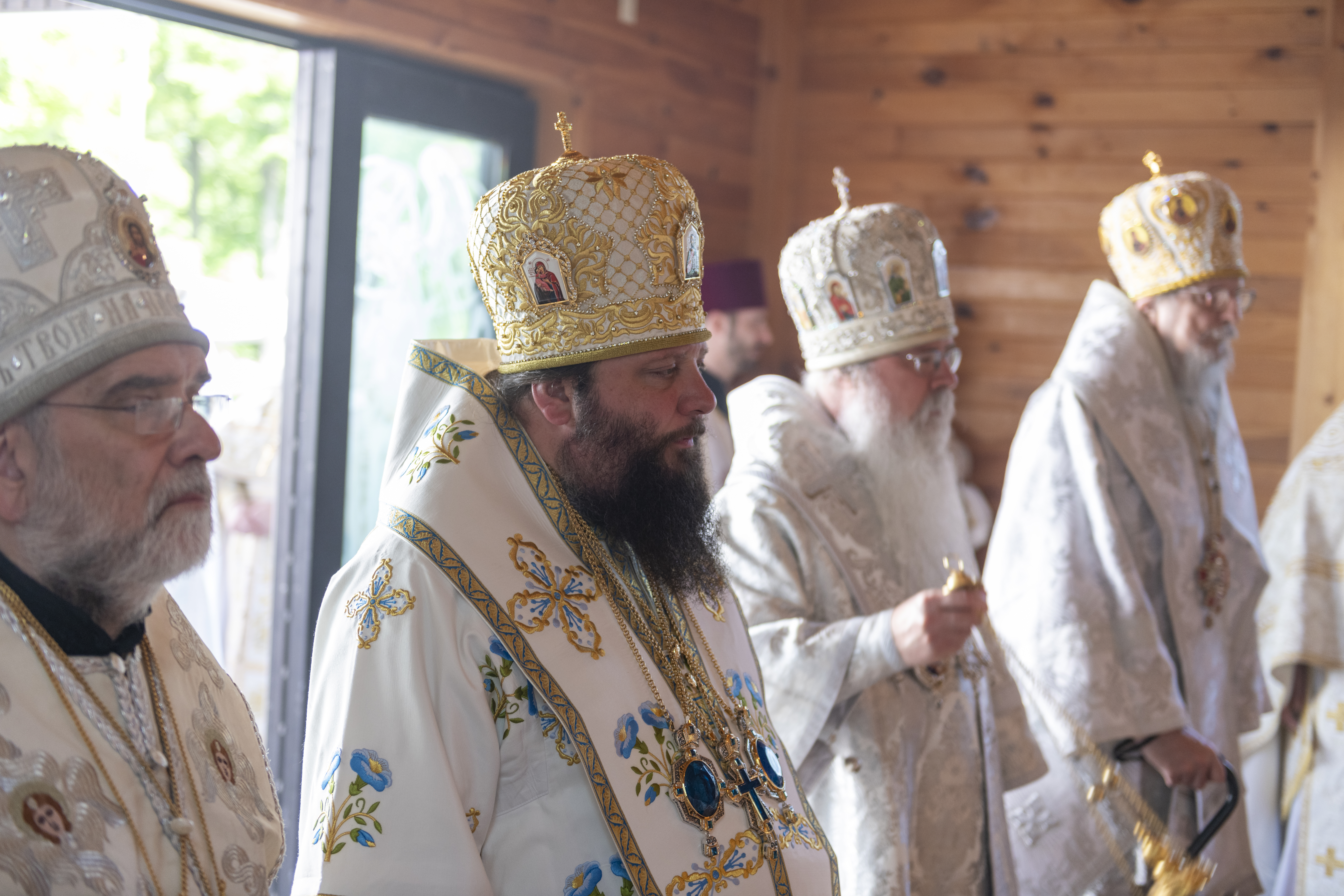 On 29 May, 2023, the Monday of the seventh week after Pascha, coinciding with the observance of Memorial Day, His Eminence Metropolitan Nicholas of Eastern America and New York, First Hierarch of the Russian Orthodox Church Outside of Russia, visited St Tikhon Stavropighial Monastery of the Orthodox Church in America in Pennsylvania. Here His Eminence and his delegation participated in the traditional pilgrimage and celebration of Divine Liturgy, headed by His Beatitude Metropolitan Tikhon, Primate of the OCA. In addition to the ROCOR delegation, joining the hierarchs in the service were His Eminence Archbishop Melchizedek of Pittsburgh and Western Pennsylvania; His Eminence Archbishop Michael of New York and New Jersey; Archimandrite Sergius, Prior of St Tikhon’s Monastery; Archpriest Alexander Rentel, Chancellor of the OCA; Archpriest John Parker, Dean of St Tikhon’s Seminary, along with other clerics of the monastery and seminary and visiting clergymen.