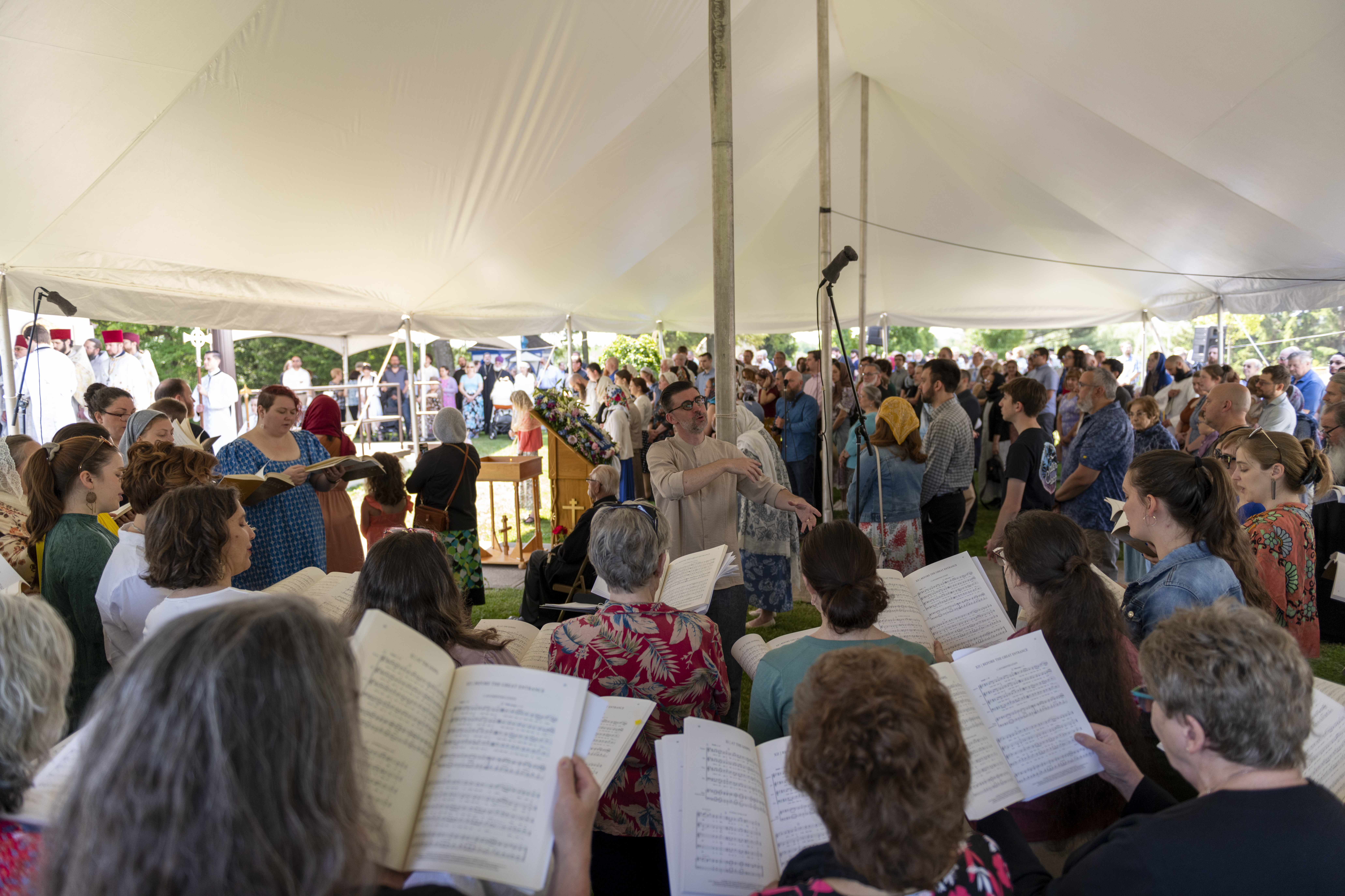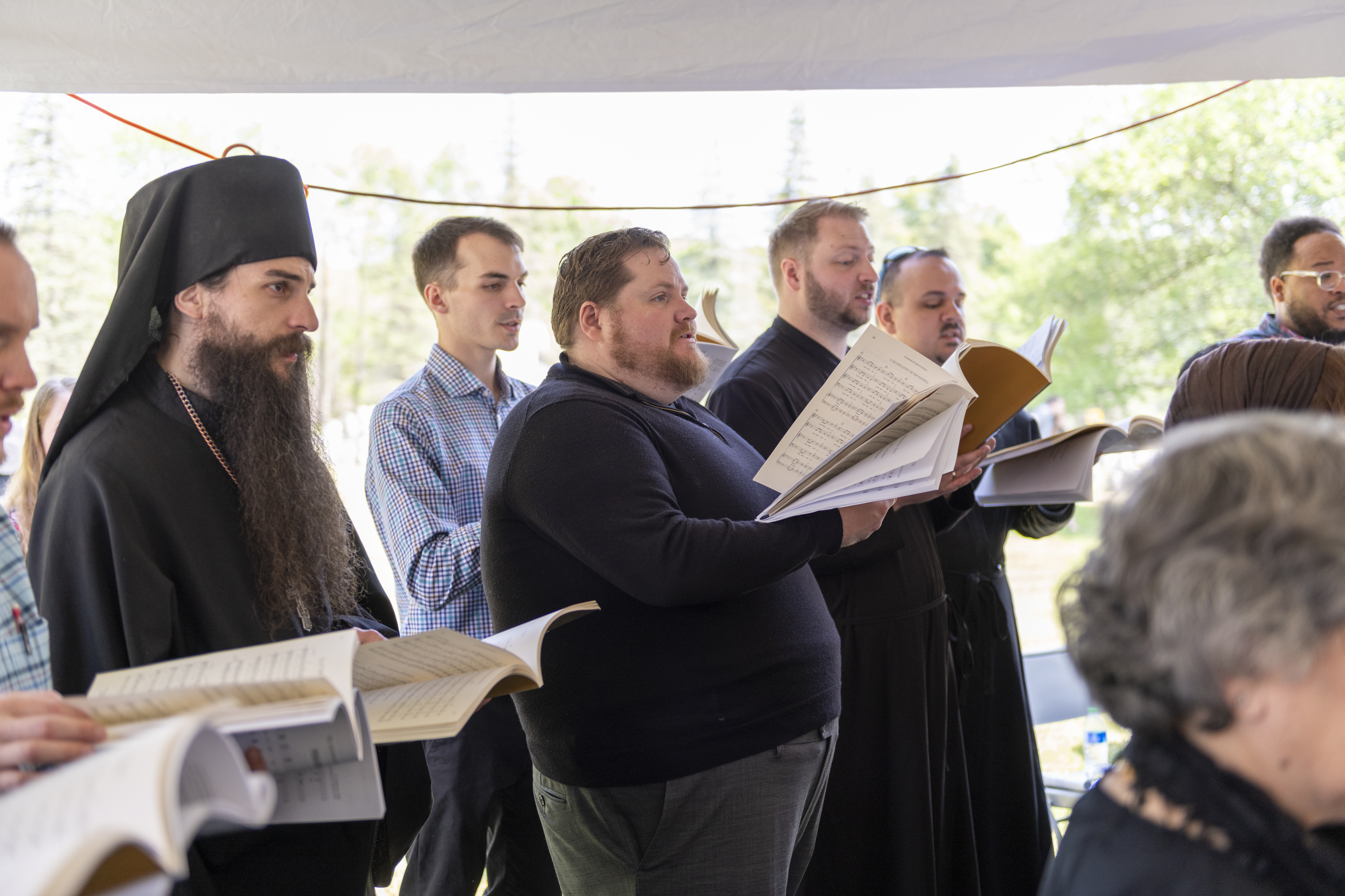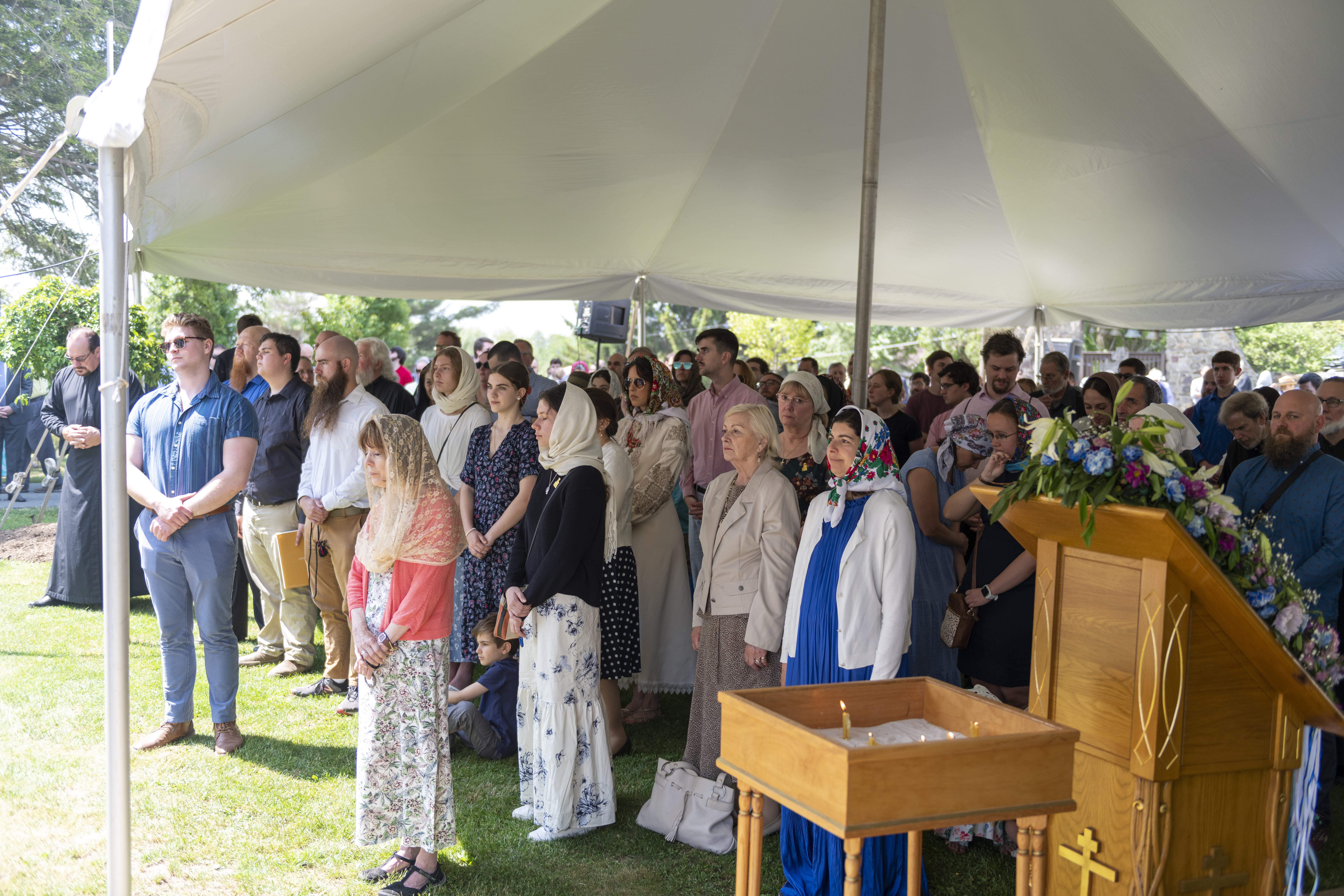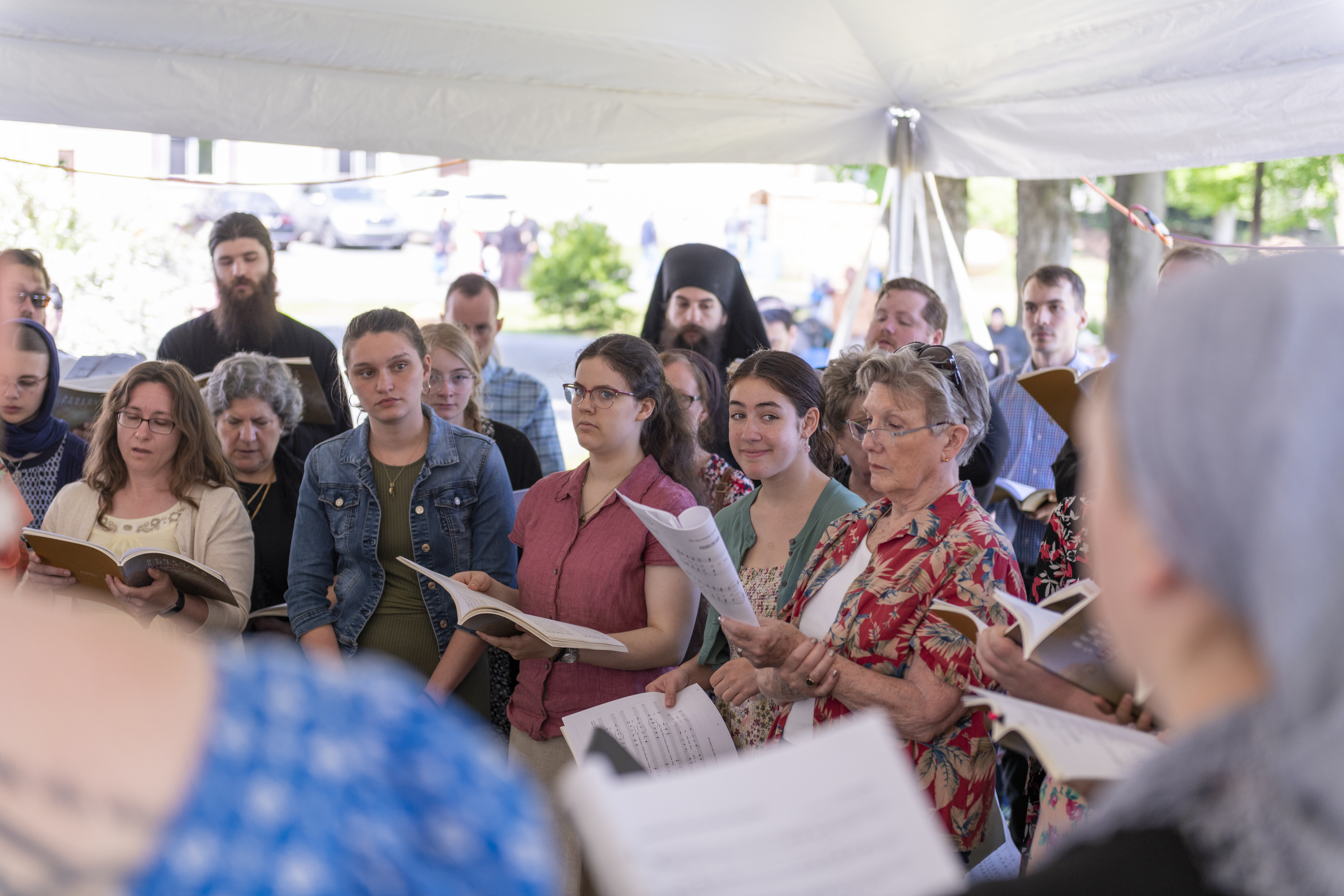 The cemetery church located behind the monastery cathedral served as the altar on this day, and the choir and a multitude of worshipers prayed under the open skies.