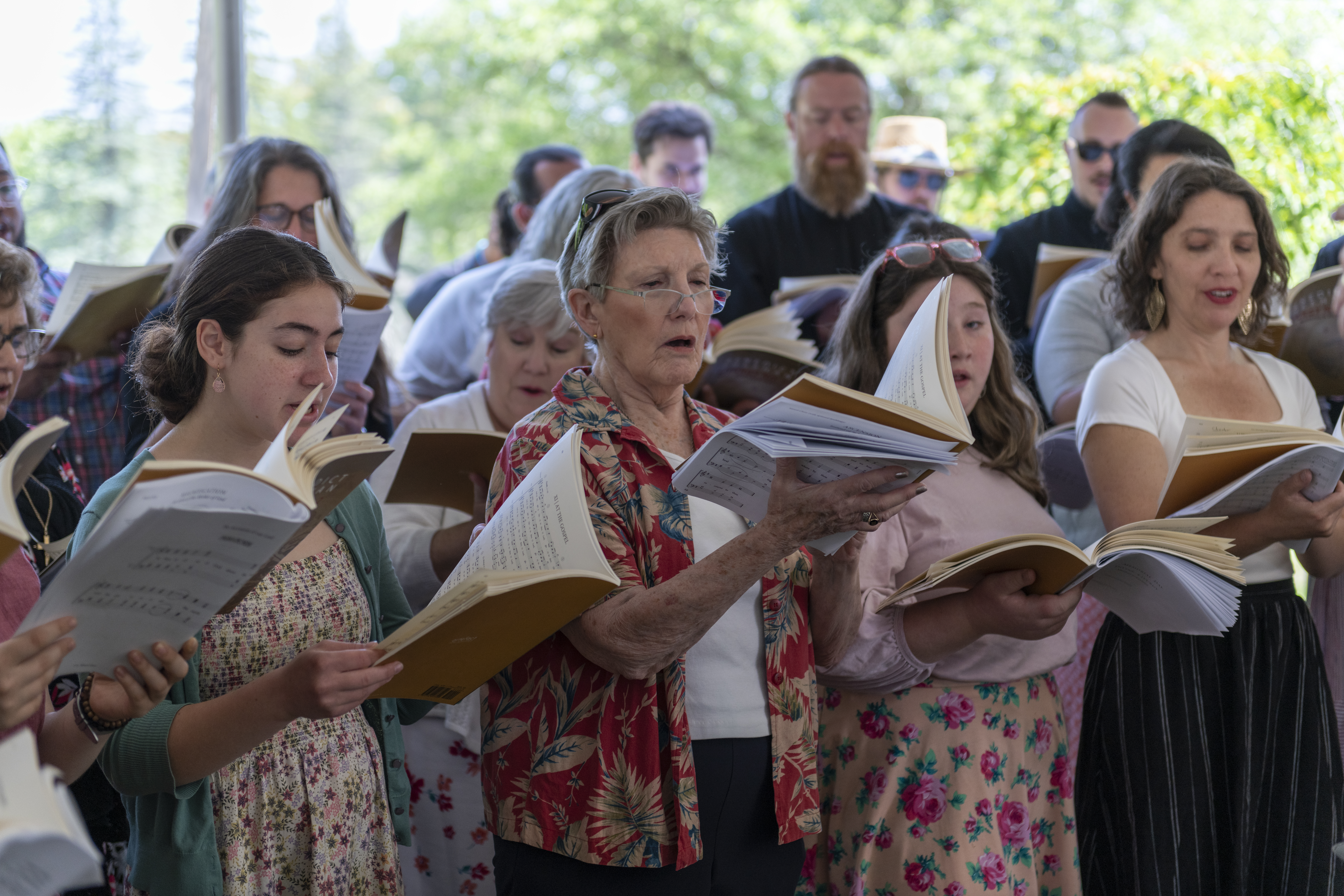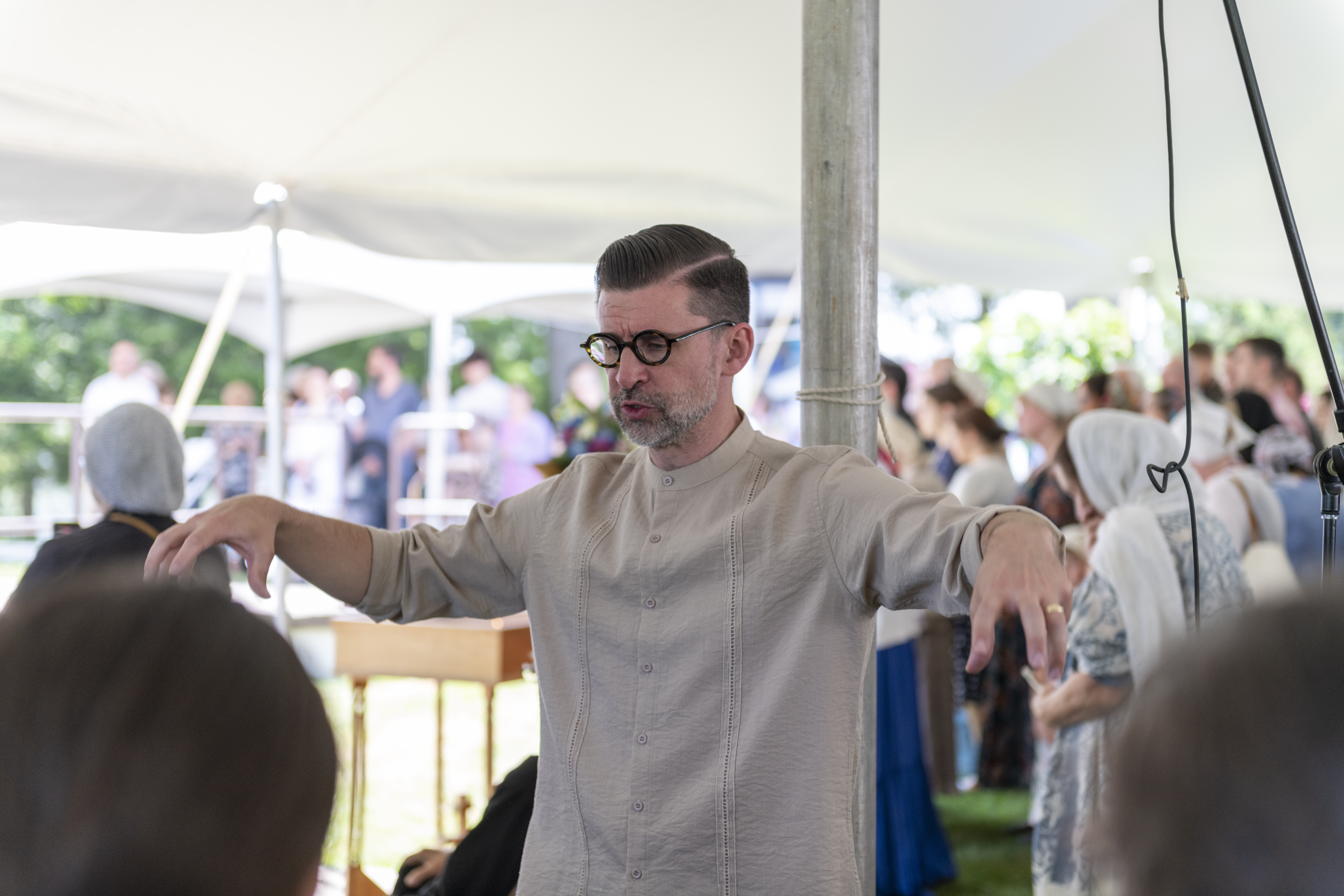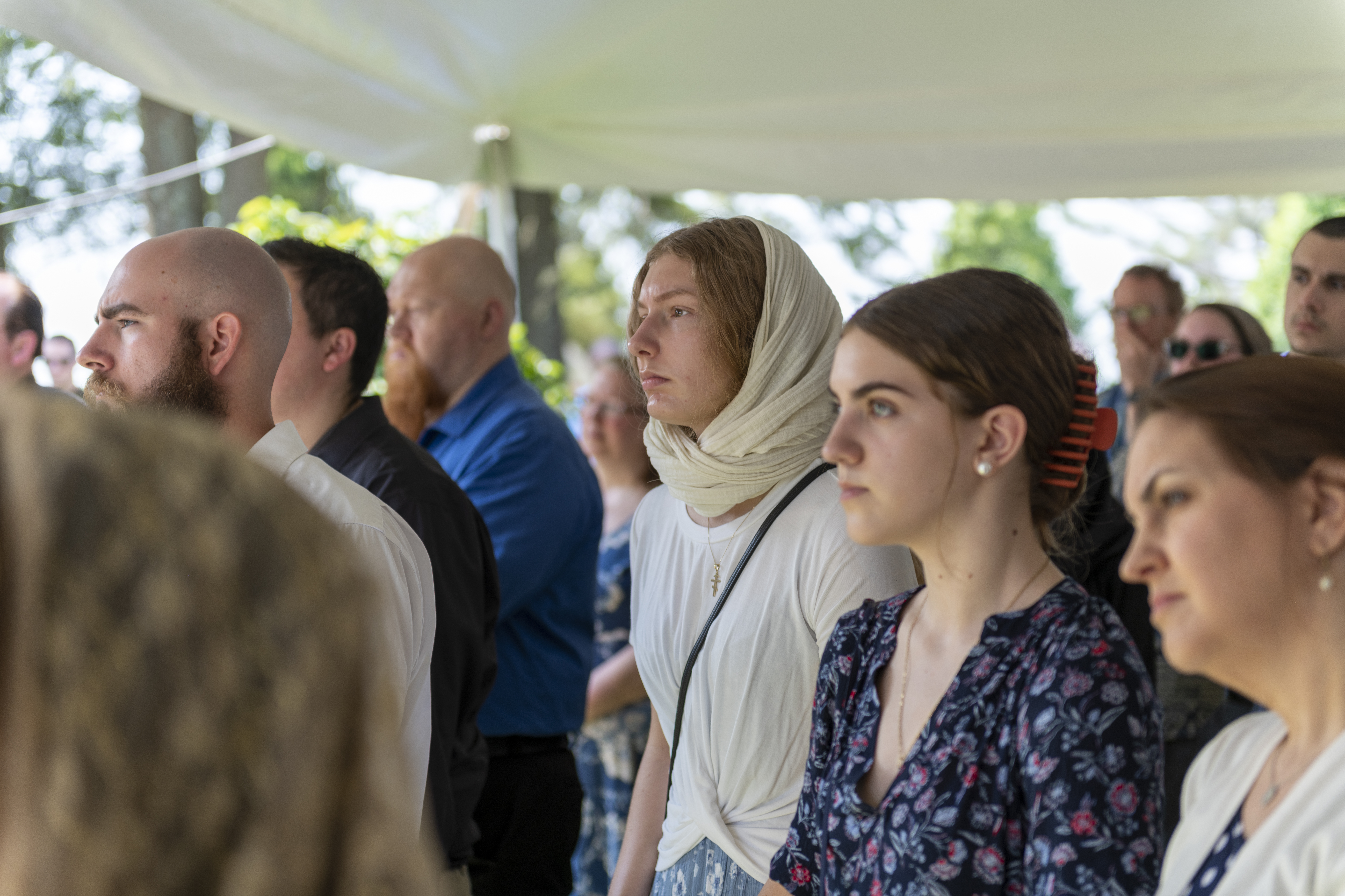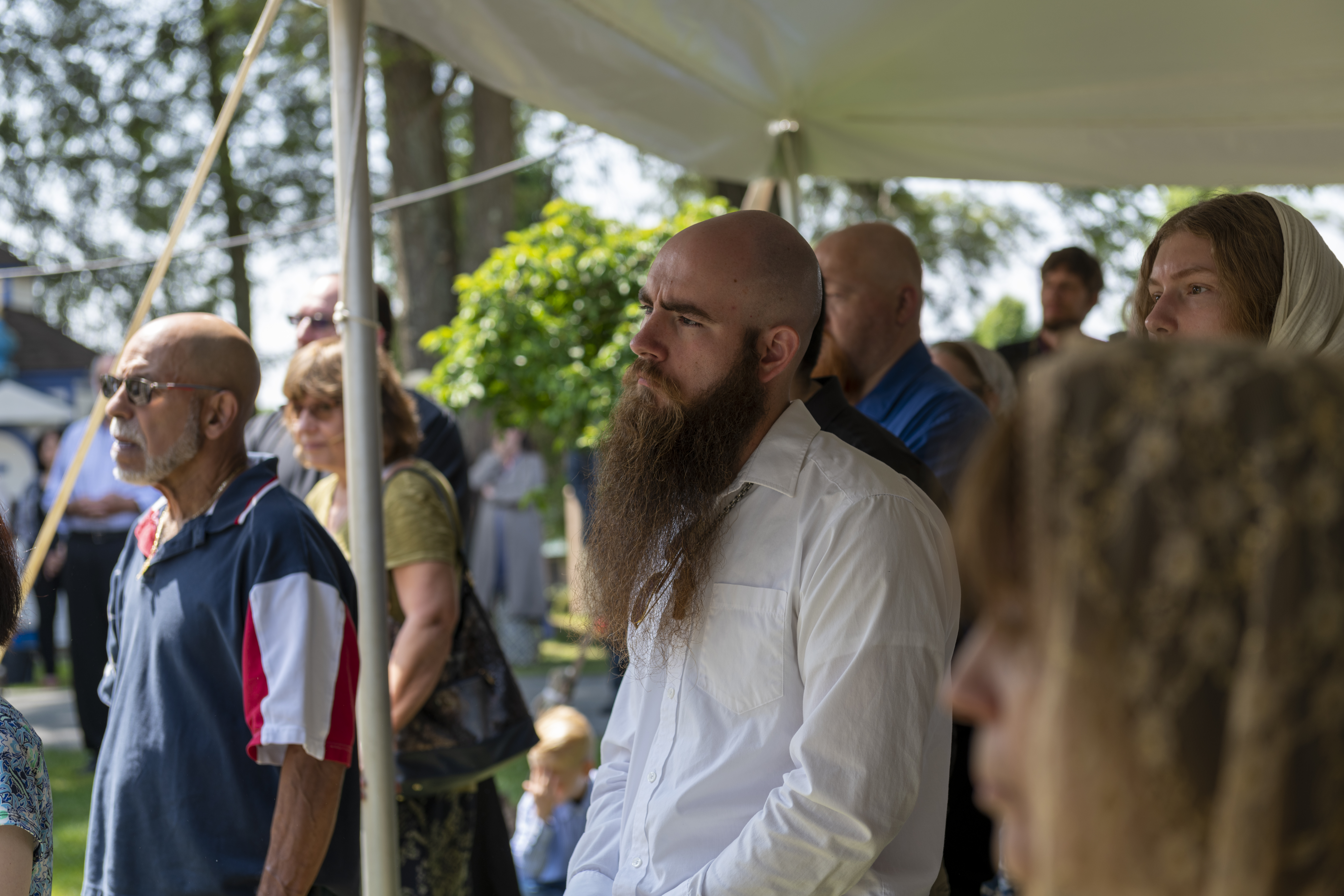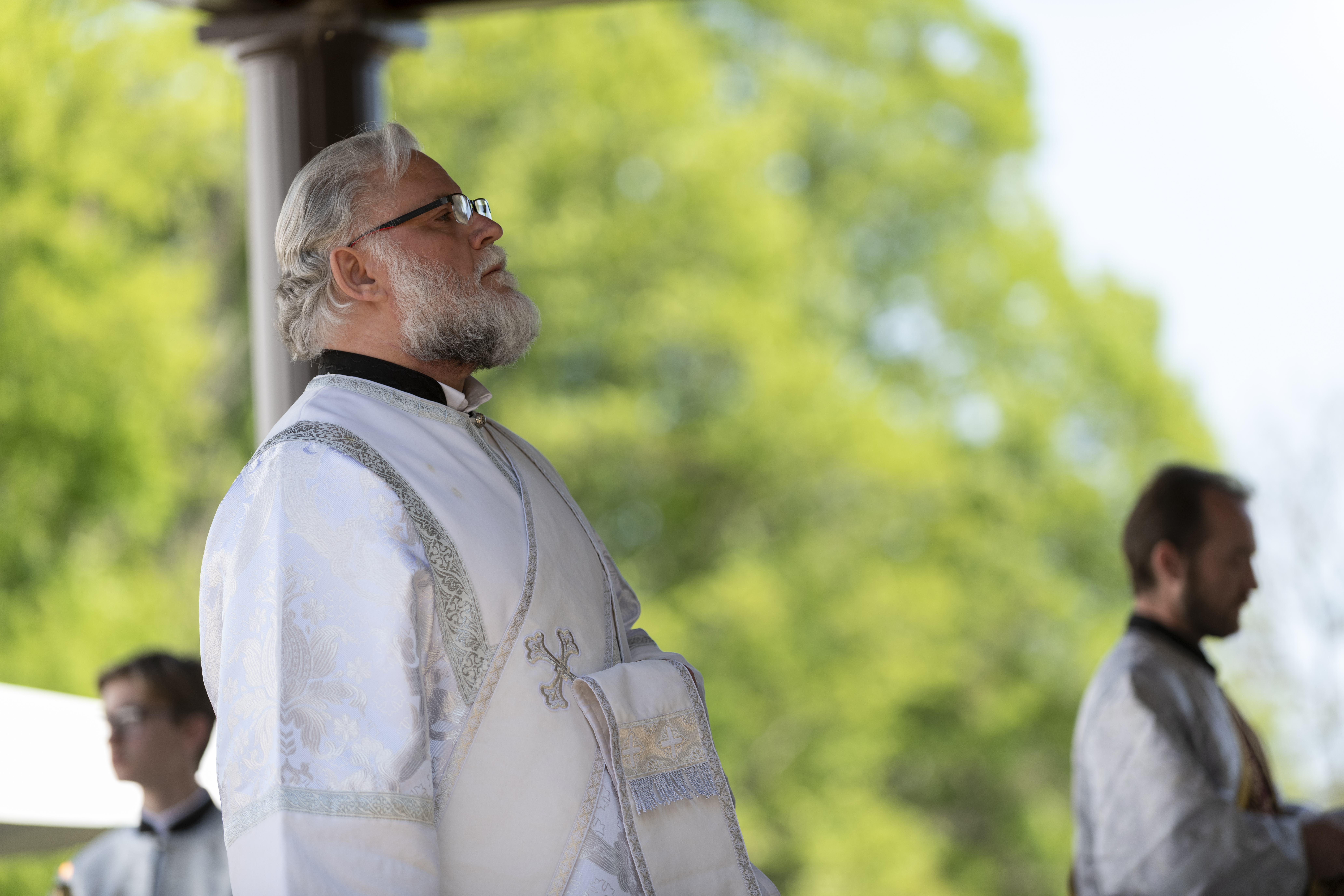 The cemetery church located behind the monastery cathedral served as the altar on this day, and the choir and a multitude of worshipers prayed under the open skies.