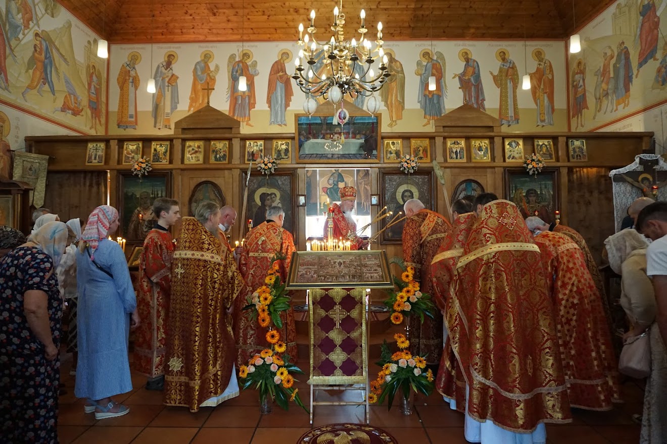 On Sunday, 18 June, 2023, the Sunday of All Russian Saints, His Eminence Metropolitan Mark of Berlin and Germany of the Russian Orthodox Church Outside of Russia celebrated Divine Liturgy in the Church of the Archangel Michael in the north of Munich, in the Ludwigsfeld district. Concelebrating with His Eminence were the rector of the church, Priest Andrei Berezovsky, Archpriest Alexander Galanin (Ukrainian Orthodox Church), Priest Maxim Dorokhov and Protodeacon Bartholomew Bazanov.