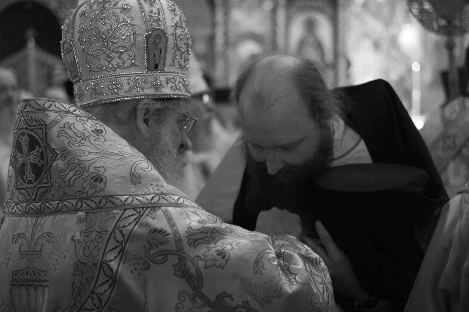 At the minor entrance of the Divine Liturgy, the First Hierarch bestowed a golden pectoral cross issued by the Synod of Bishops upon Hieromonk Peter (Karakozov), a cleric of the Western American Diocese.