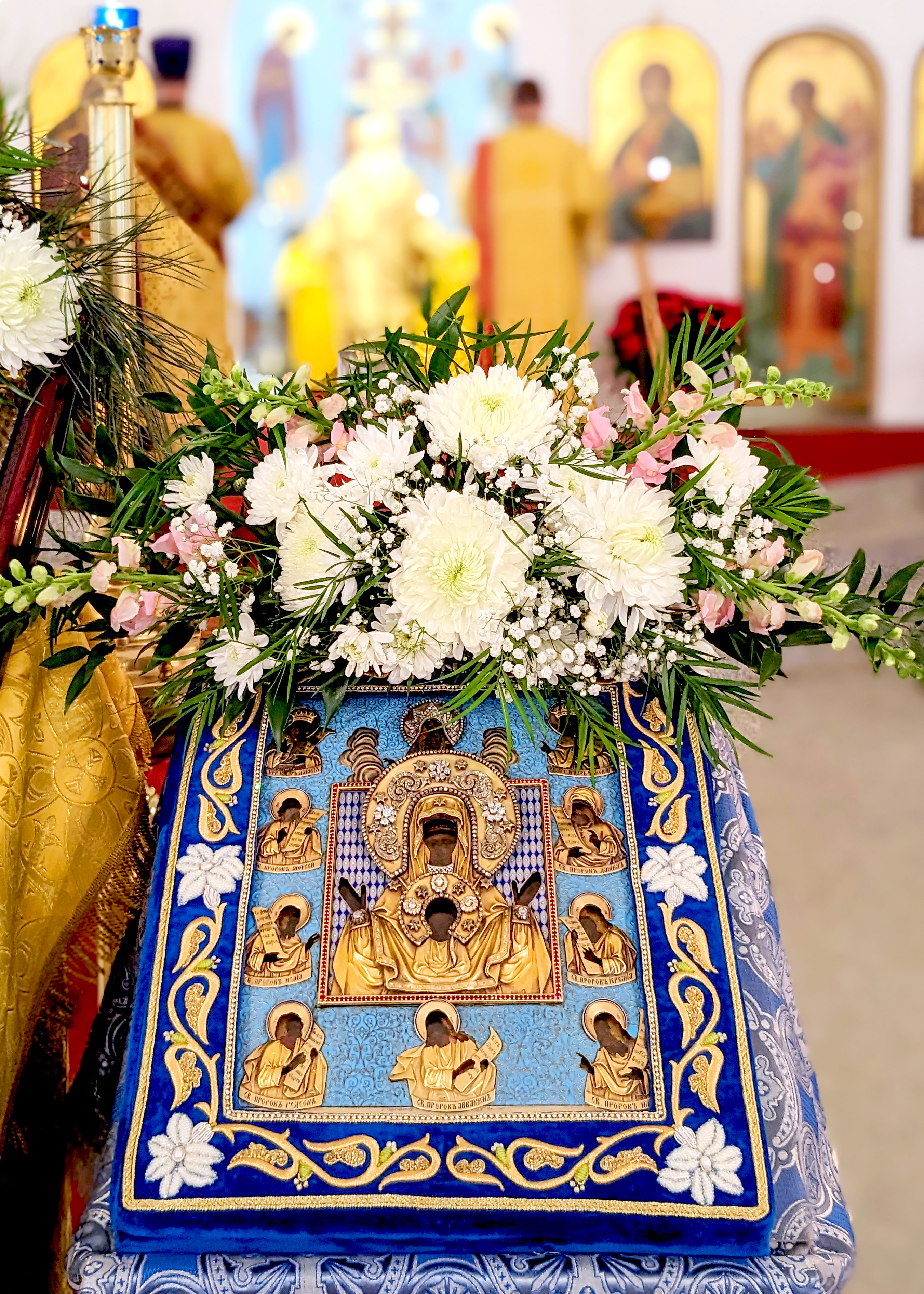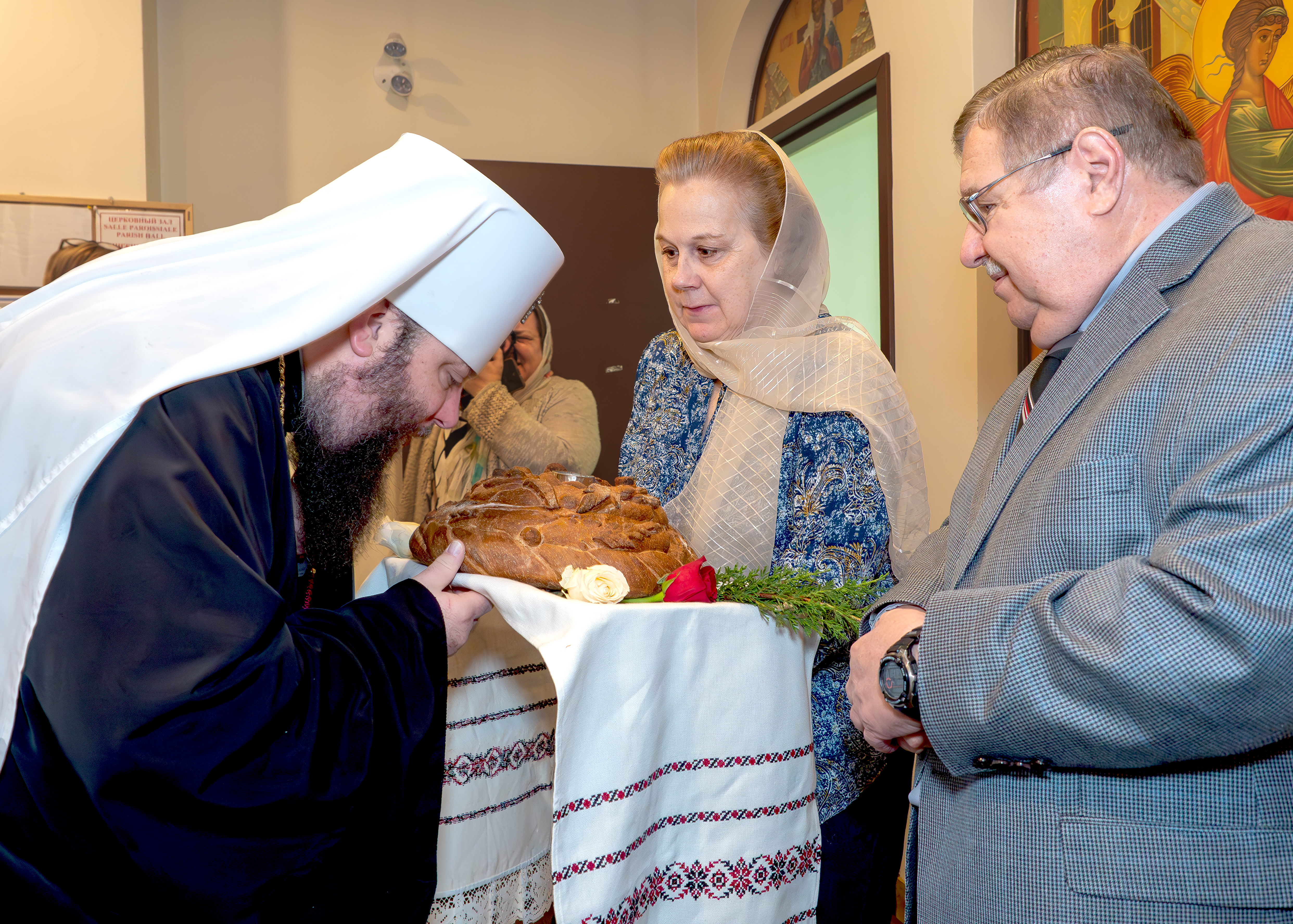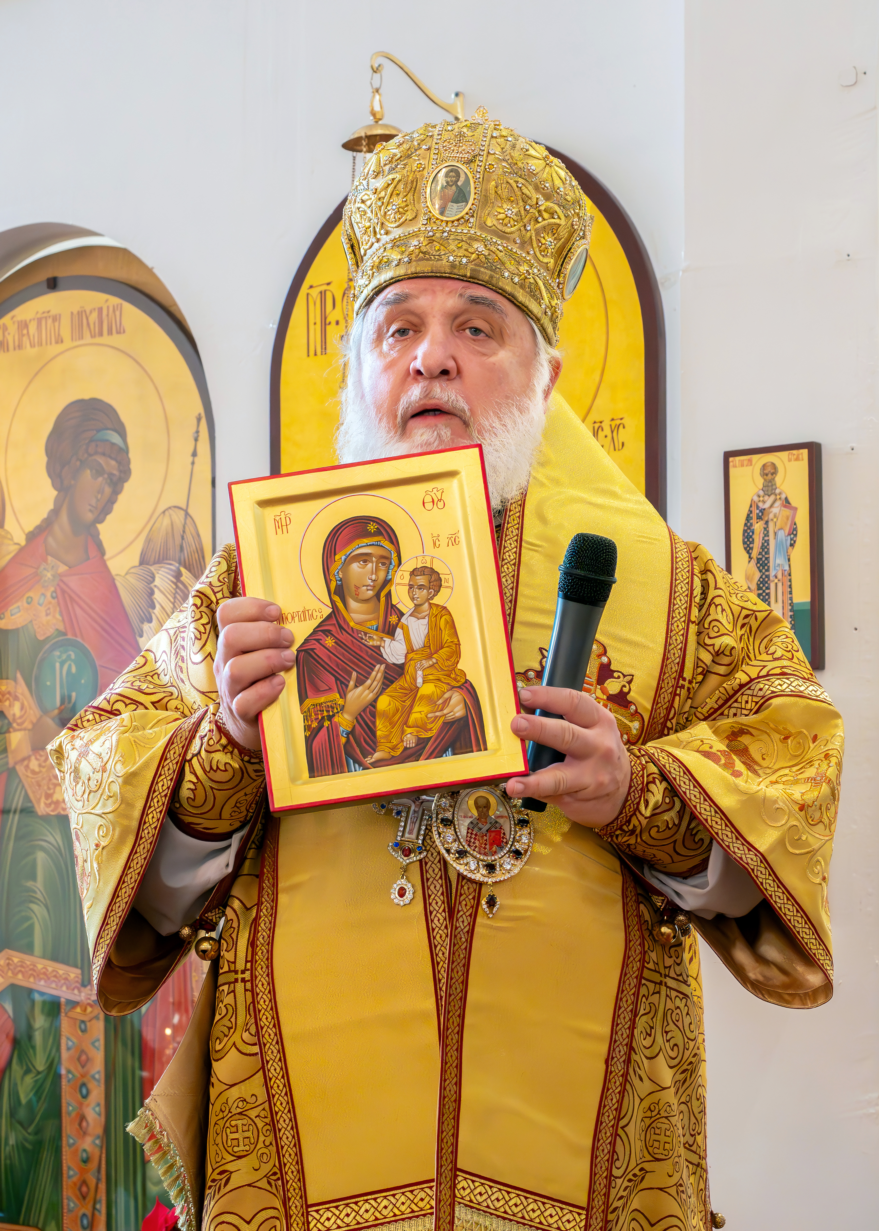 On behalf of the parish, Archbishop Gabriel, its Rector, presented Metropolitan Nicholas with a copy of the Myrrh-streaming Iveron-Montreal Icon of the Mother of God painted by iconographer Alexander Shelekhov on the occasion of the first visit to St Nicholas Cathedral by the First Hierarch.