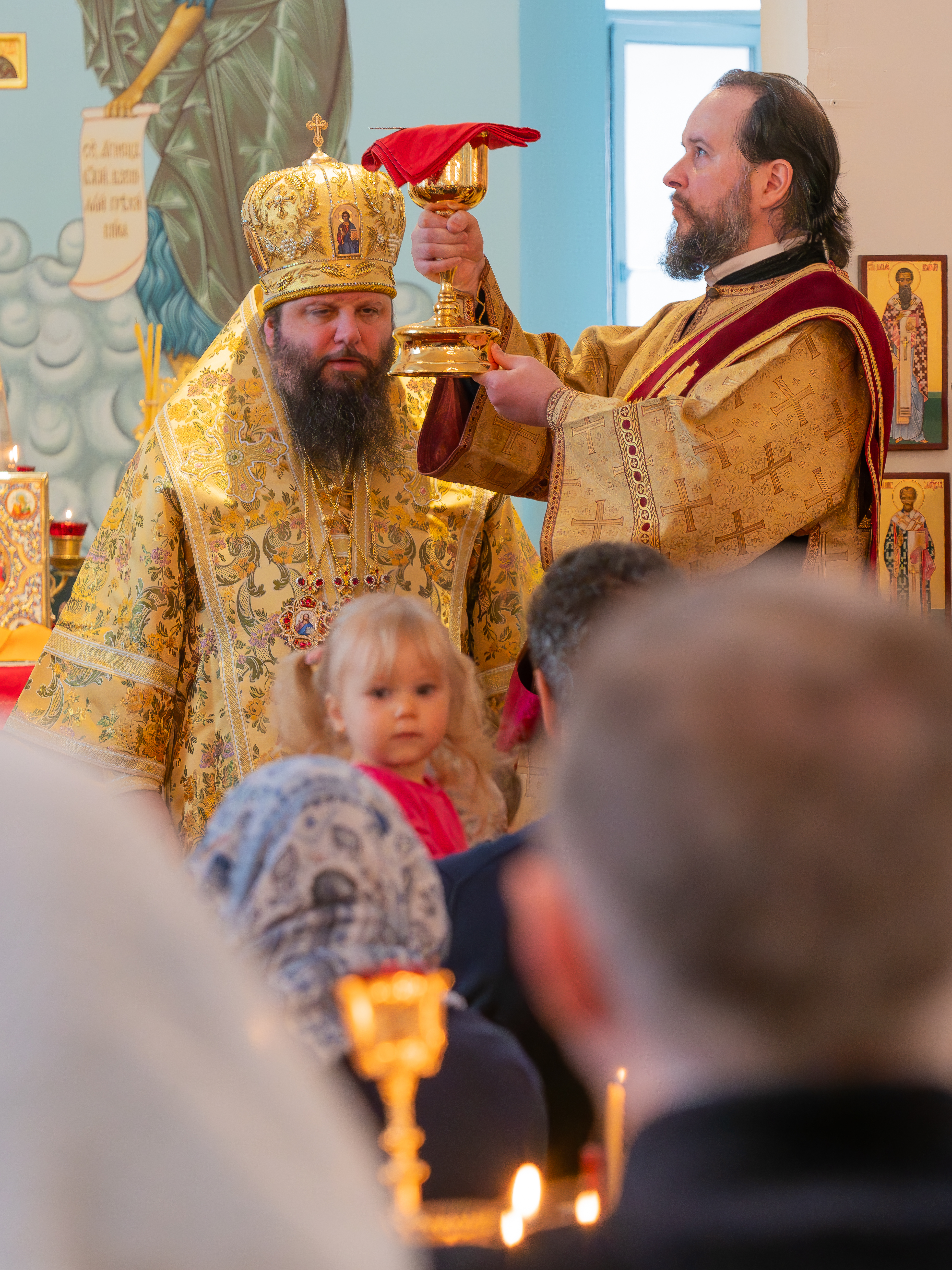 At the little entrance, Deacon Dmitry Matenin was awarded the right to wear a double orarion, for his zealous service to the Church of Christ, which was presented to him by Metropolitan Nicholas.