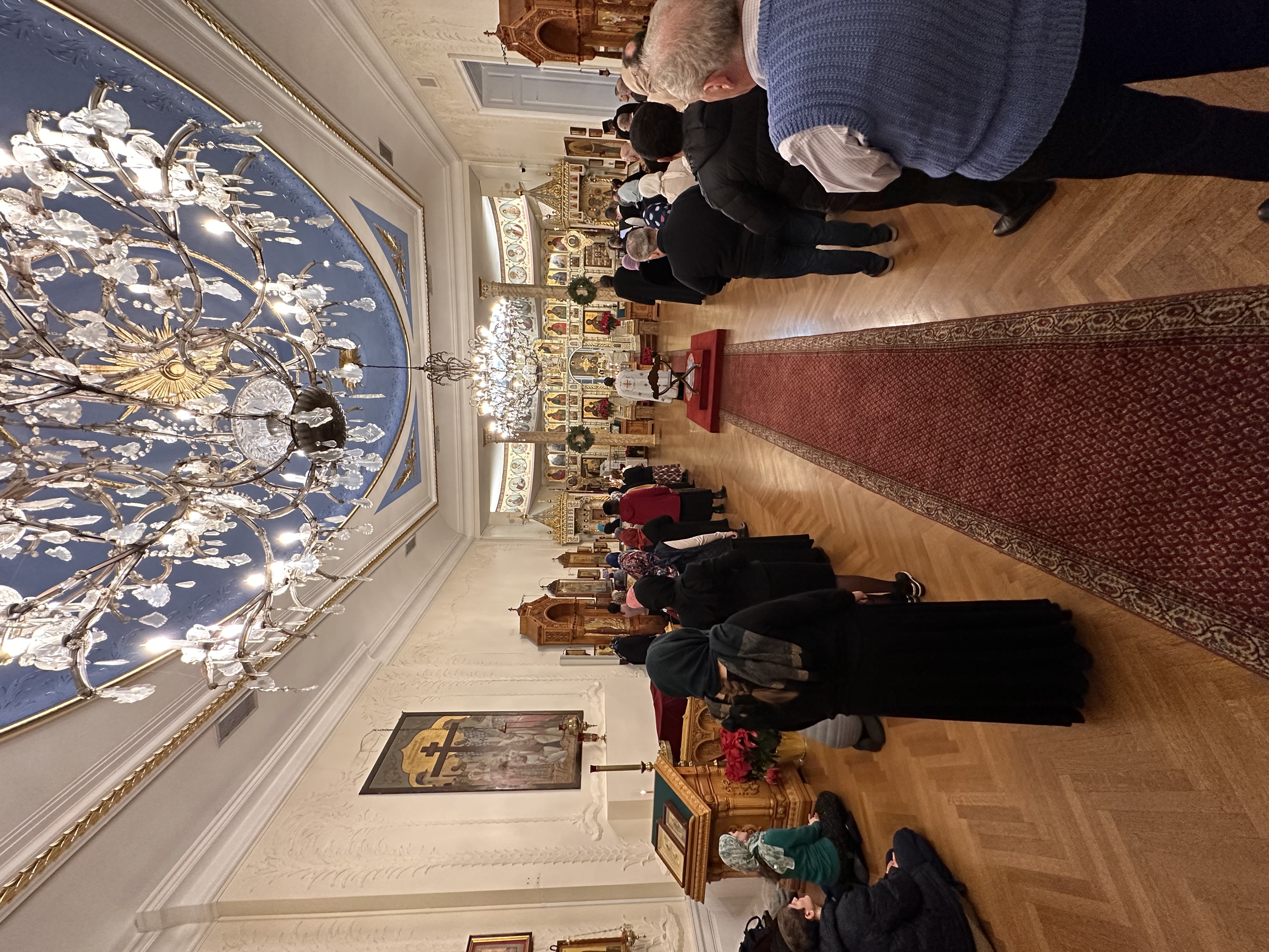 After venerating the holy relics of the Cathedral of Our Lady of the Sign, the pilgrims performed a moleben and akathist before the Kursk-Root Icon of the Mother of God "of the Sign," received a blessing from His Eminence, and conversed with him.