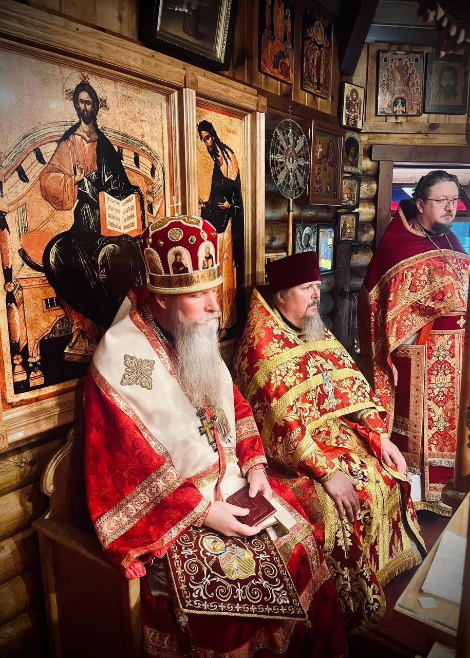 On February 4, 2024, His Eminence Archbishop Kyrill of San Francisco and Western America celebrated Divine Liturgy at the Church of the New Holy Martyrs and Confessors of Russia in the town of Mulino, OR, which was the first church in the world dedicated to this host of saints. Concelebrating with His Eminence were Archpriest James Baglien, Rector of the Church of St Martin the Merciful in the city of Corvallis, OR; Hieromonk Peter (Karakozov), cleric of the Old Cathedral in San Francisco; Priest Boris Levashov, Rector of the parish, Deacon Vladimir Nazarenko and Deacon Andrey Volodkin.