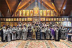 After the Hours and Typica, the more than 50 priests and deacons assembled to greet His Eminence Metropolitan Nicholas of Eastern America and New York. Praying in the altar was His Eminence Metropolitan Jonah (Paffhausen).