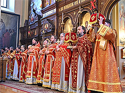 During the service, prayers were read for Holy Rus' and also for the “Prosperity of the Russian Orthodox Church” (thanksgiving for the unity of the Russian Church). Prayers for the blessed repose of His Holiness Patriarch Alexy II and Metropolitan Laurus and all those who worked for the good of the reunification of the Russian Orthodox Church were intoned. A moleben of thanksgiving was served after liturgy.