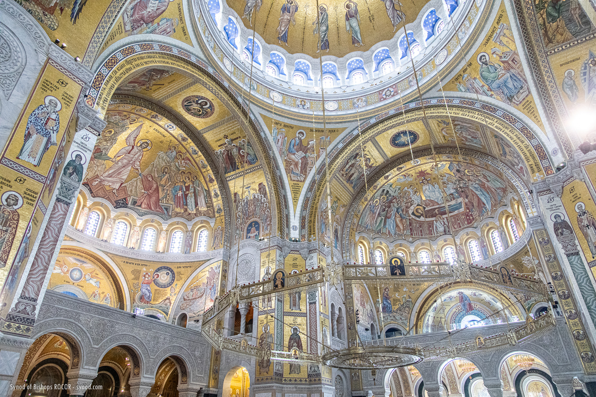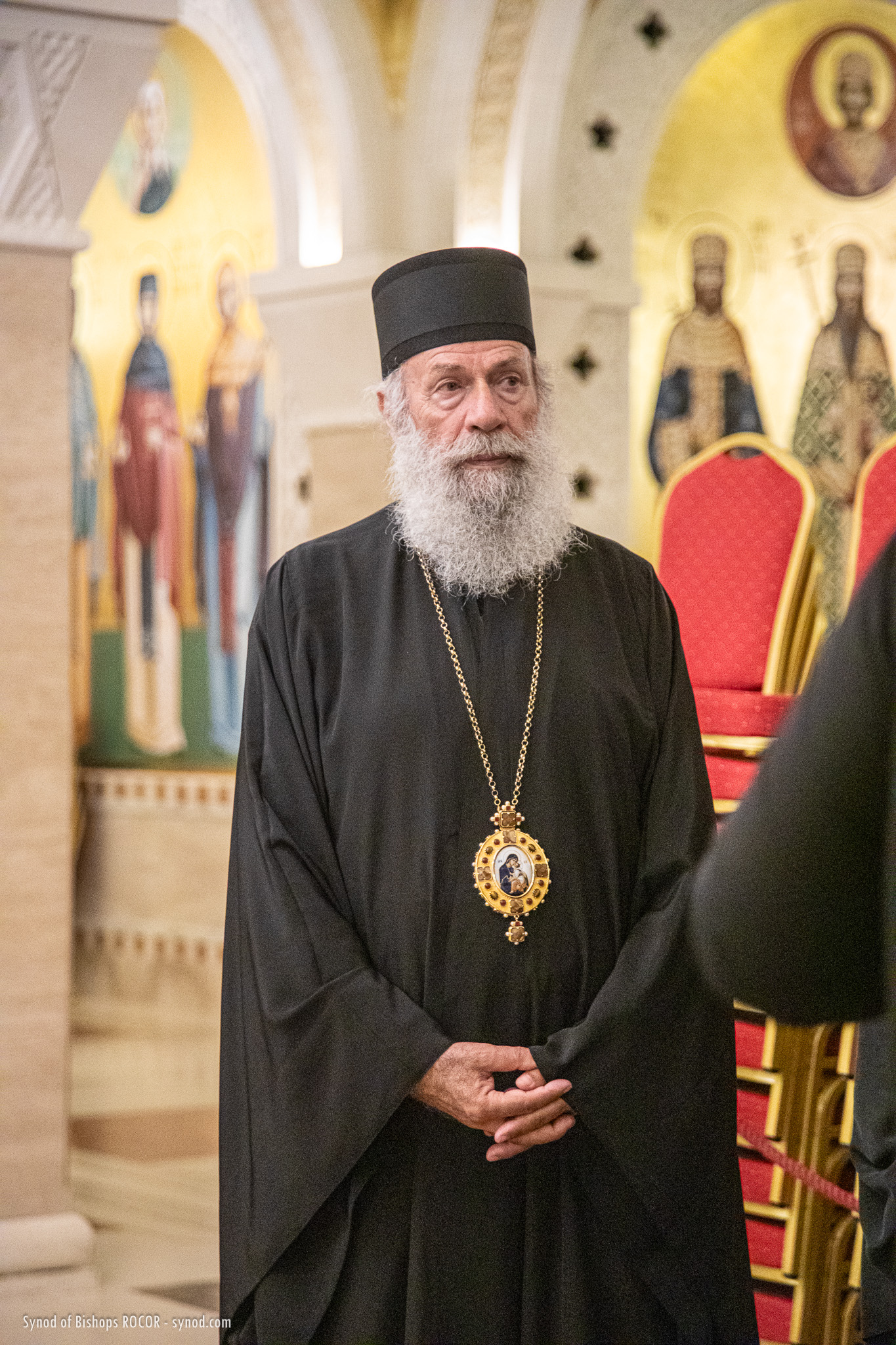 Metropolitan Nicholas is accompanied by members of the Synod of Bishops: His Eminence Metropolitan Mark of Berlin and Germany, His Eminence Archbishop Gabriel of Montreal and Canada, His Eminence Archbishop Peter of Chicago and Mid-America, His Grace Bishop Irenei of London and Western Europe, His Grace Bishop Job of Stuttgart, as well as Protopriest Serafim Gan, Chancellor of the Synod of Bishops and Secretary of the First Hierarch of ROCOR, as well as Archpriest Luka Novakovic and Archpriest Ljubo Milosevic, cleric of the Eastern American Diocese, Secretary of the Diocese of Mid-America, Archpriest Gregory Joyce, and Reader George Konev.