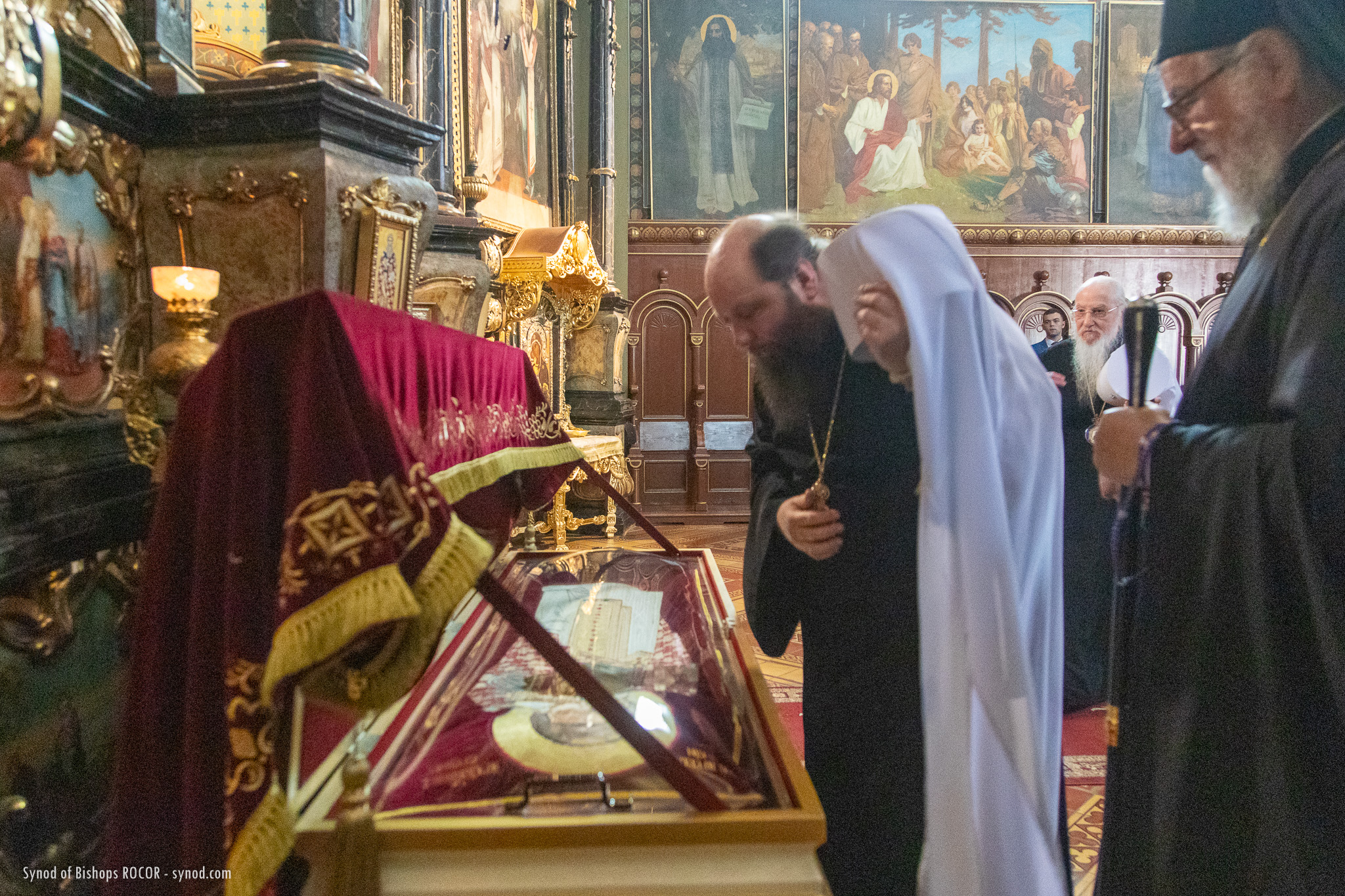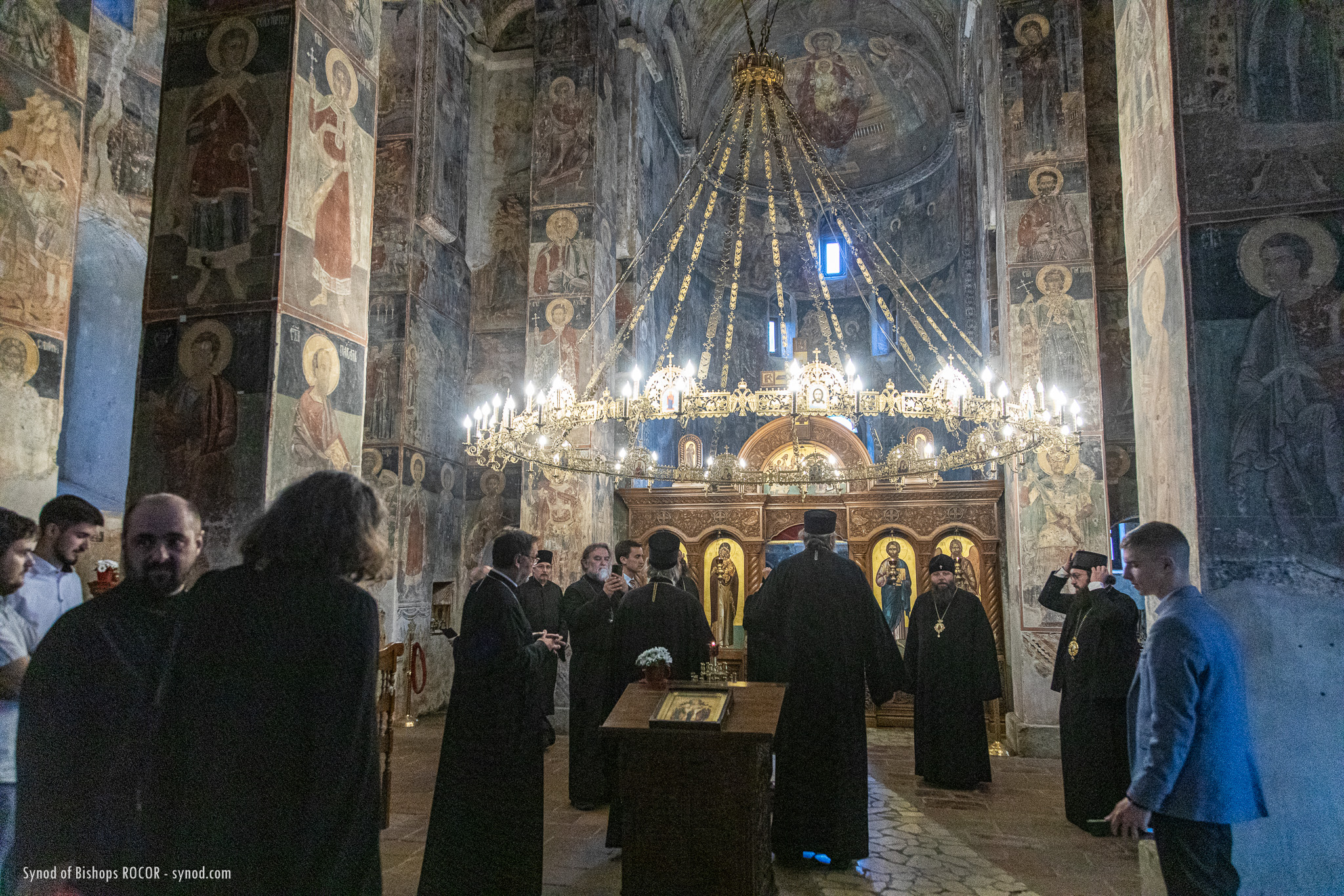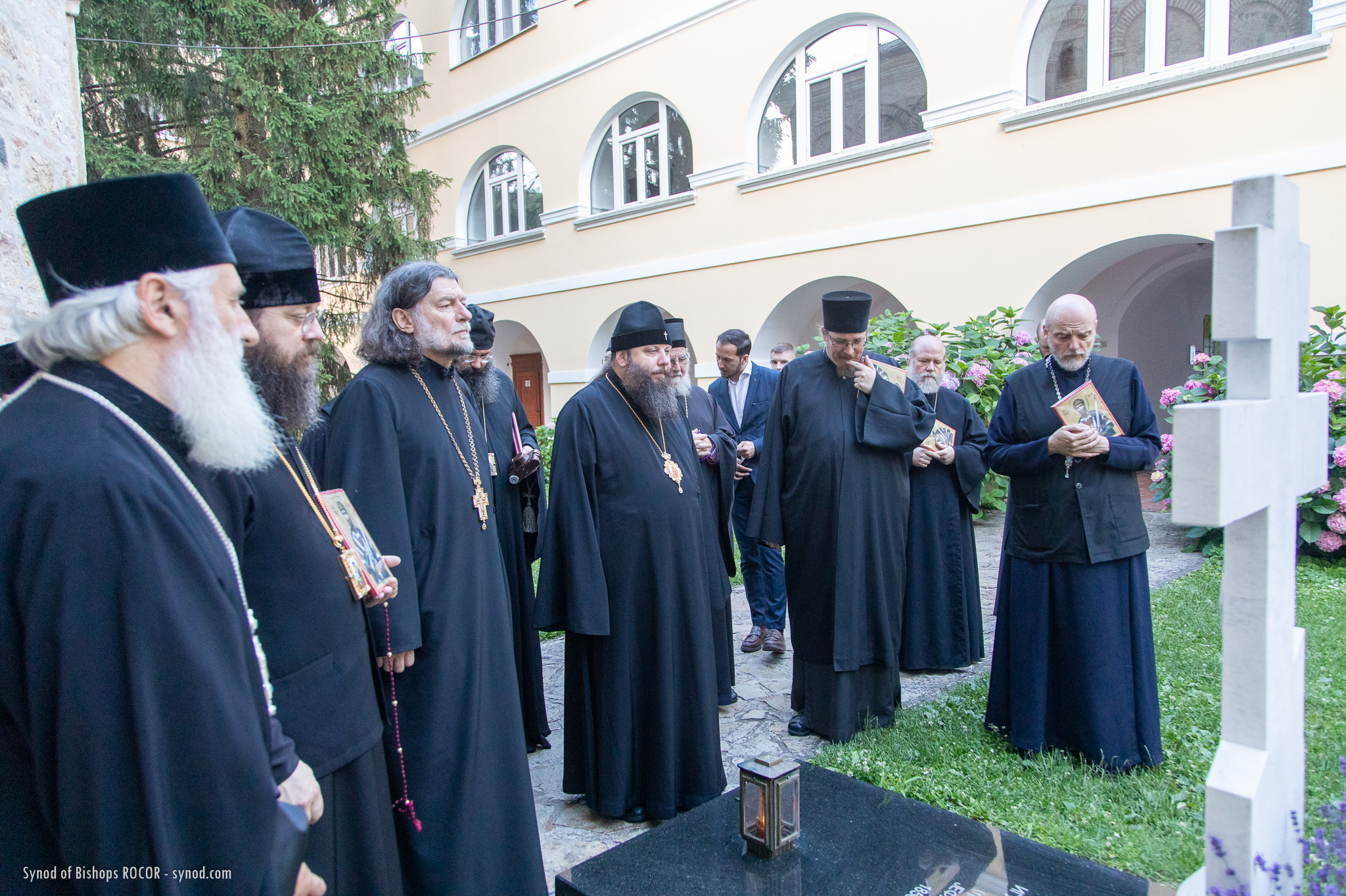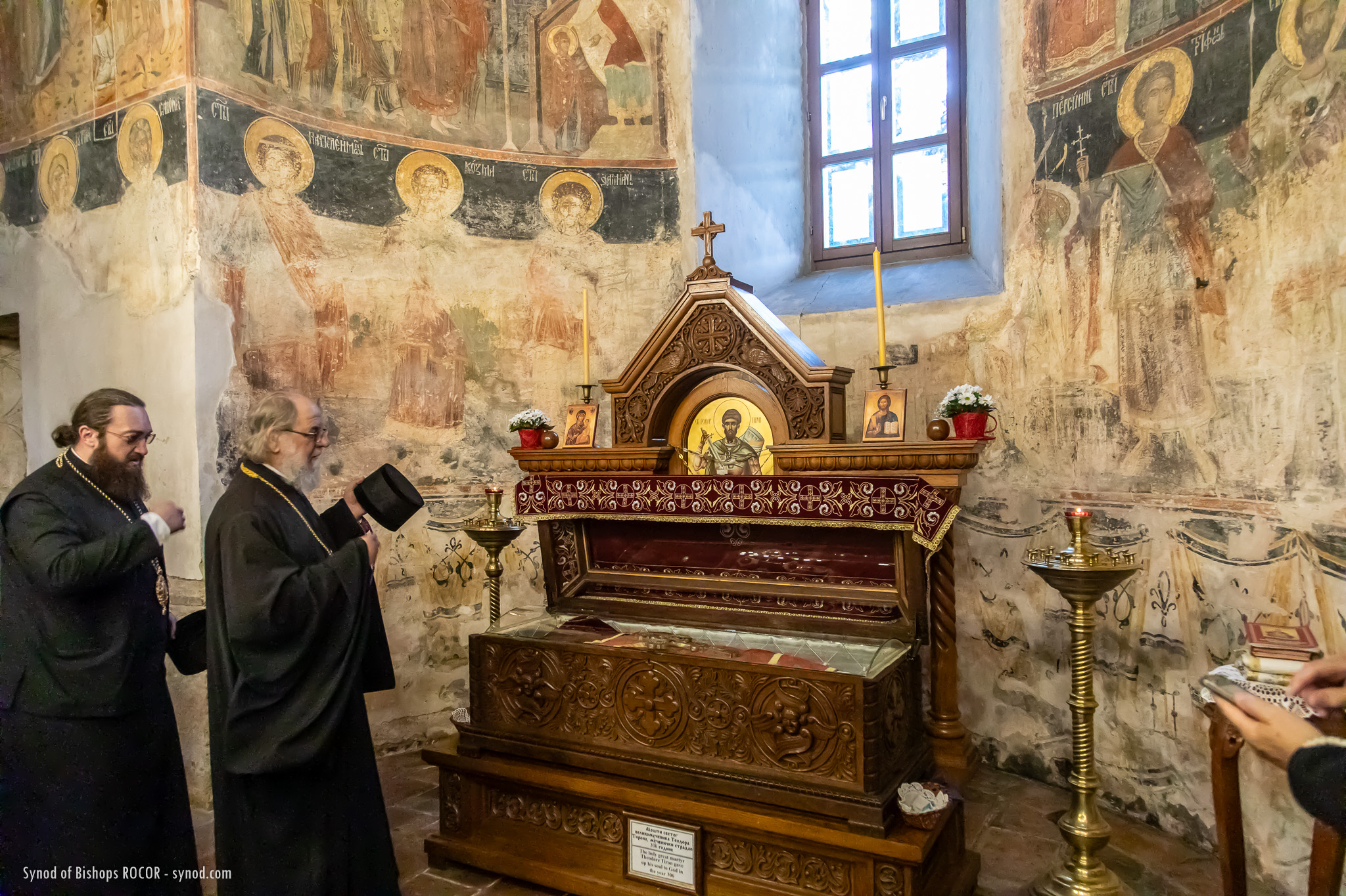 That evening, the delegation of the Russian Church Abroad, headed by Metropolitan Nicholas, visited the monasteries of Grgeteg and Novo-Hopovo, at one time important spiritual centers of the Russian diaspora. At the latter monastery, the delegates venerated the relics of Holy Great Martyr Theodore the Tyro and the grave of Abbess Ekaterina (Efimovskaya) of blessed memory, the founder of the Convent of the Nativity of the Most-Holy Mother of God in Lesna.