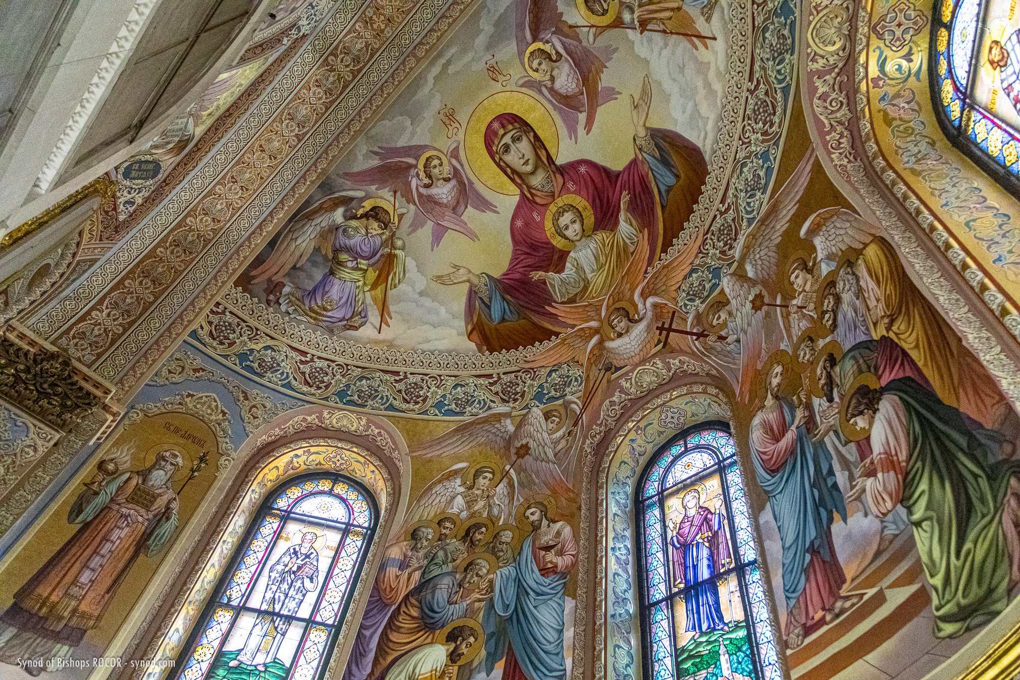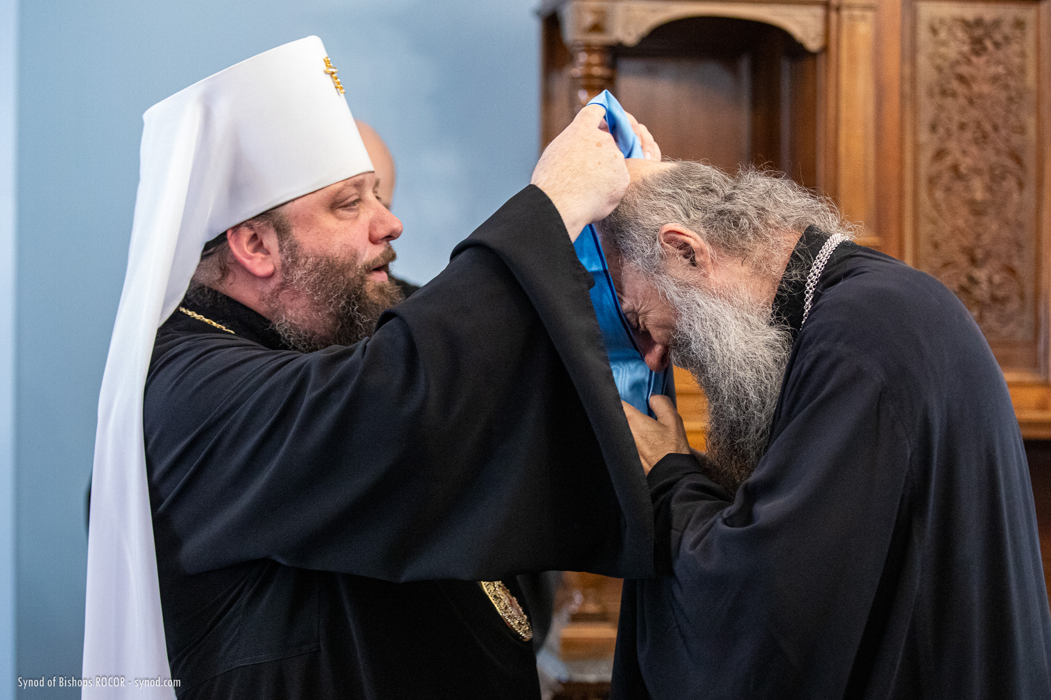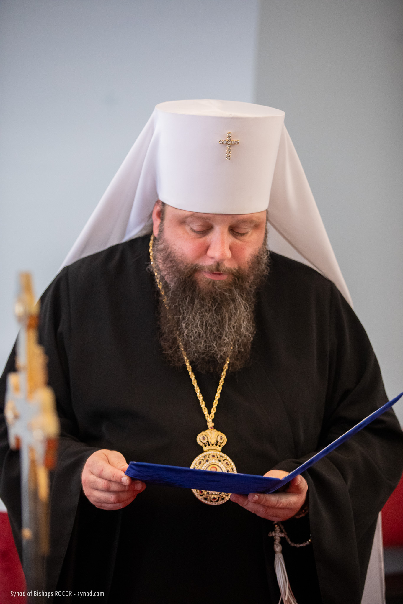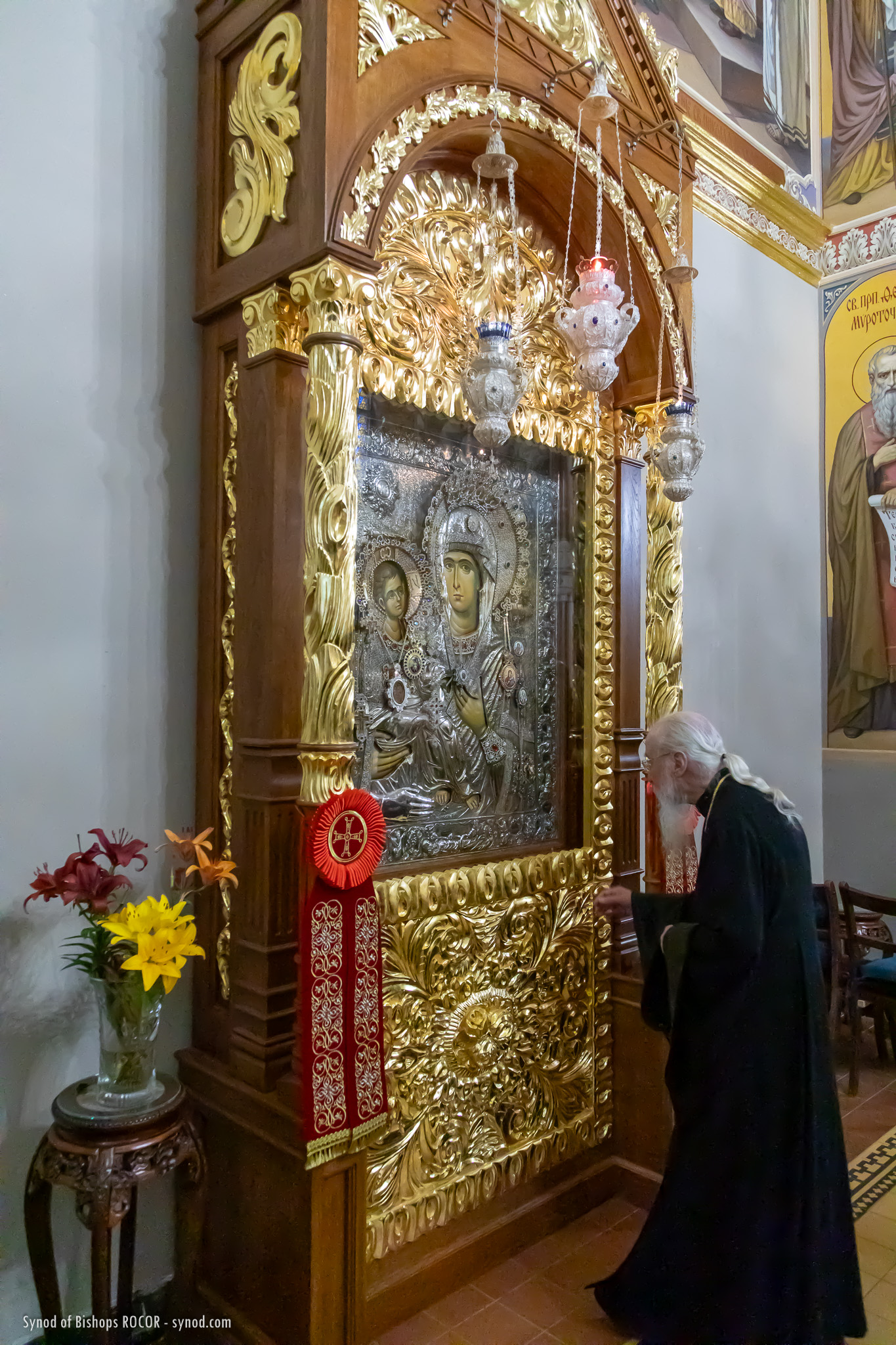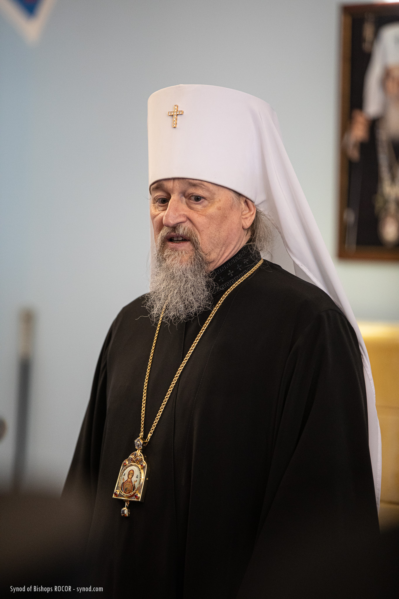 After a prayer and opening words by His Holiness, Metropolitan Nicholas delivered a welcoming speech, at the end of which he awarded His Holiness with the Synodal Order of the Kursk-Root Icon of the Mother of God “of the Sign,” 1st Degree, and gave the Primate an icon of the Mother of God depicted together with St John of Shanghai and St Jonay of Hankow, along with the Holy New Martyrs and Ascetics of the Russian diaspora painted to mark the centennial of the Russian Orthodox Church Outside of Russia, as well as a panaghia as a memento.