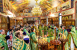 Divine Liturgy was celebrated by the First Hierarch of the Russian Orthodox Church Outside of Russia, co-served by His Grace Bishop Theodosius, rector of the church, local and visiting clergy (12 priests and 4 deacons), accompanied by jubilant singing by the parish choir under the direction of NicolasMiro.