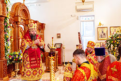 The church was filled with worshipers. The divine services were held under the aegis of the myrrh-streaming Montreal-Hawaiian Icon of the Mother of God. The icon streamed myrrh abundantly both on the way to church and during the service. Parishioners gathered the holy myrrh emanating from the icon and anointed themselves with it.